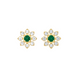 Gold Drop Earrings with Emerald cut Natural Green Stone & Sparkling Halo