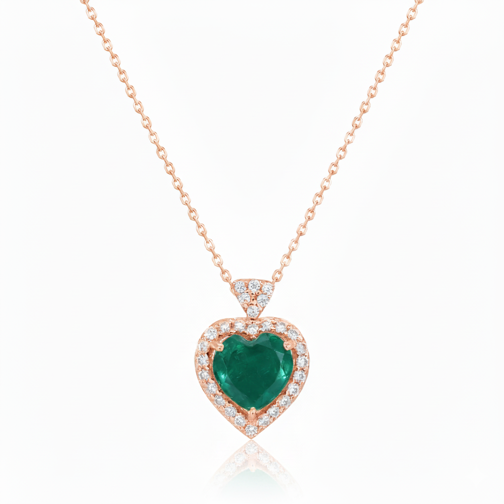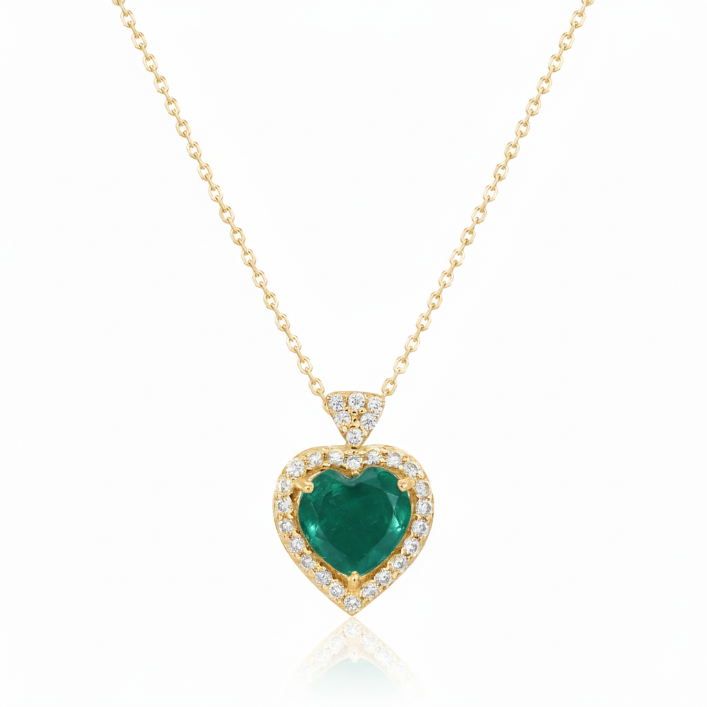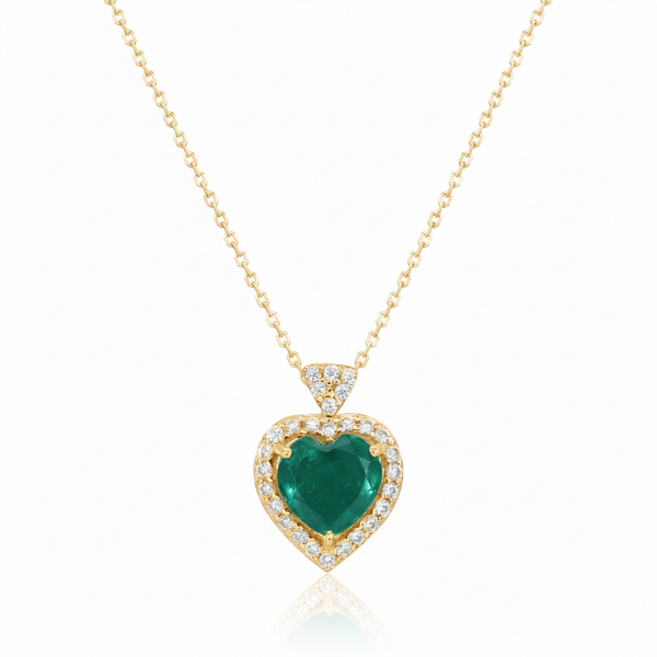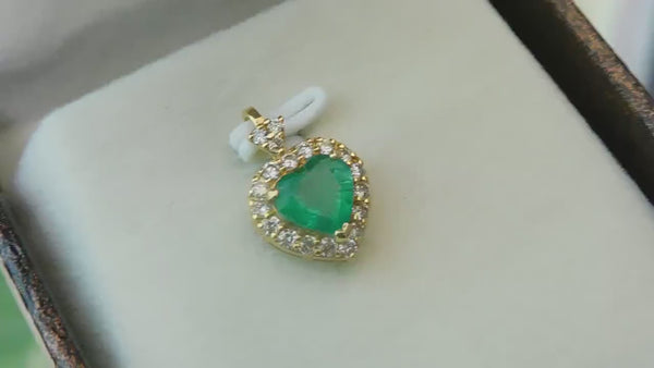 2.20 carat Genuine Emerald Heart Pendant with Diamond in 14K Gold2.20 carat Genuine Emerald Heart Pendant with Diamond in 14K Gold