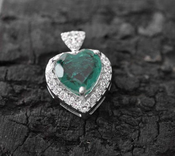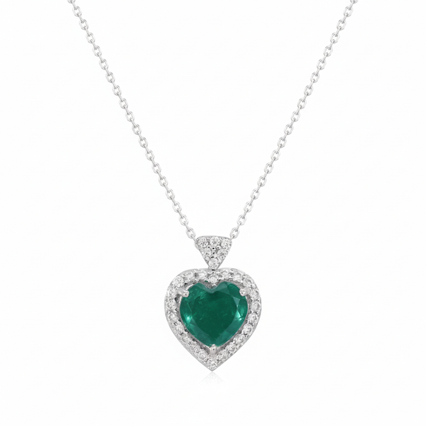 2.20 carat Genuine Emerald Heart Pendant with Diamond in 14K Gold