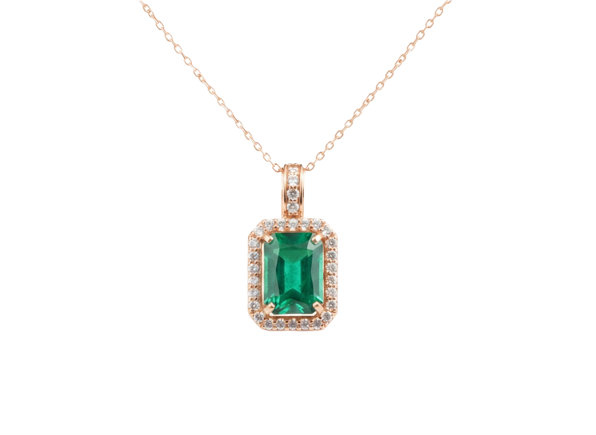 Emerald Cut Natural Emerald and Diamond Halo Pendant in 14K Gold Elegant Birthstone JewelryEmerald Cut Natural Emerald and Diamond Halo Pendant in 14K Gold Elegant Birthstone JewelryEmerald Cut Natural Emerald and Diamond Halo Pendant in 14K Gold Elegant Birthstone Jewelry