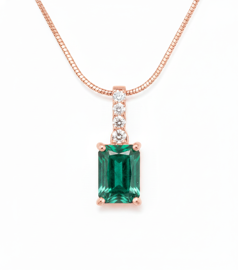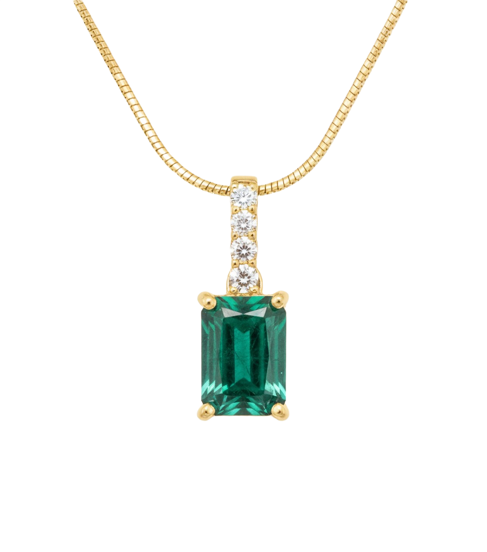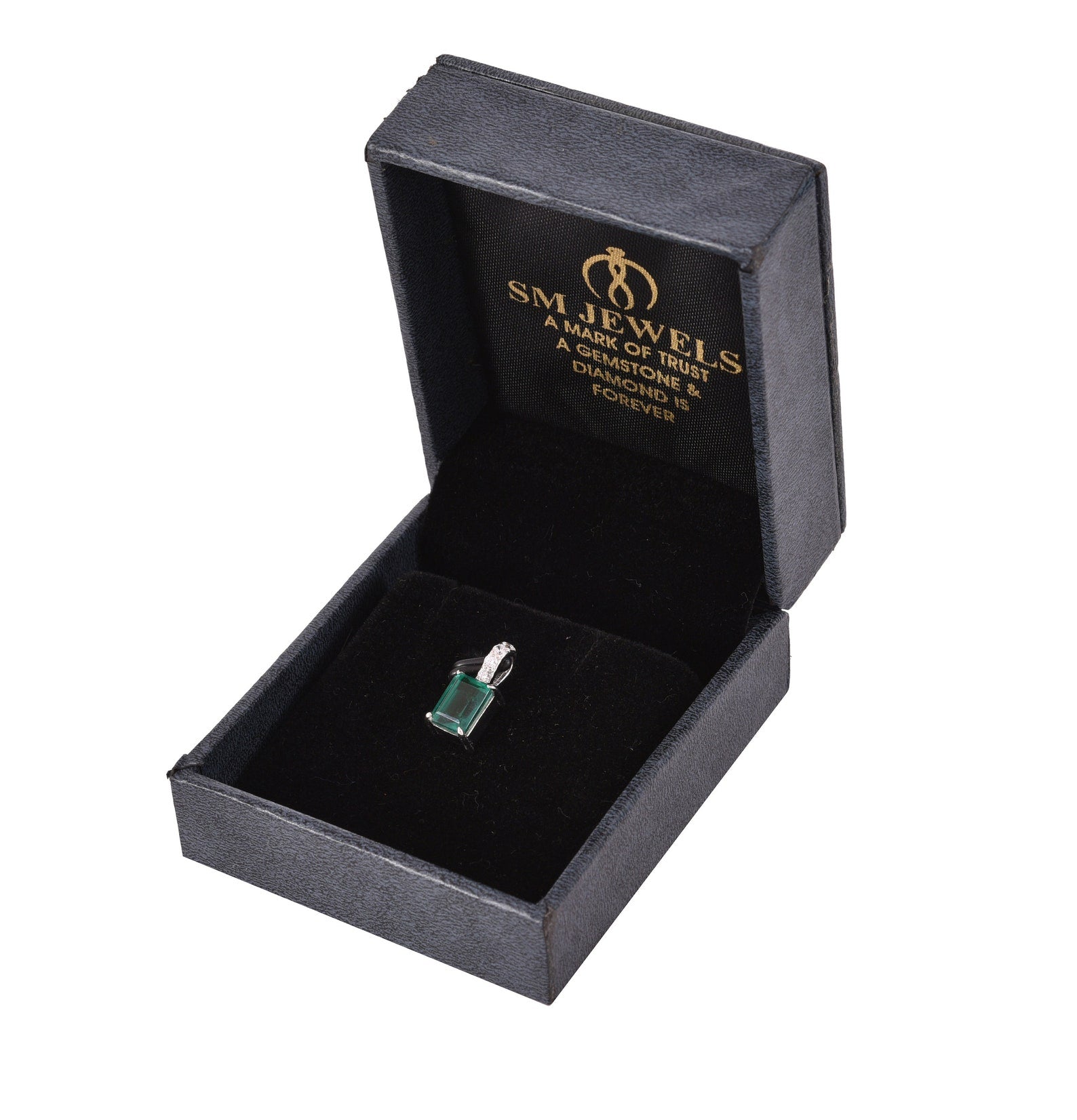 2.10 carat Emerald Cut Natural Emerald Pendant Necklace in 14k gold with Diamond Accent Bail Design
