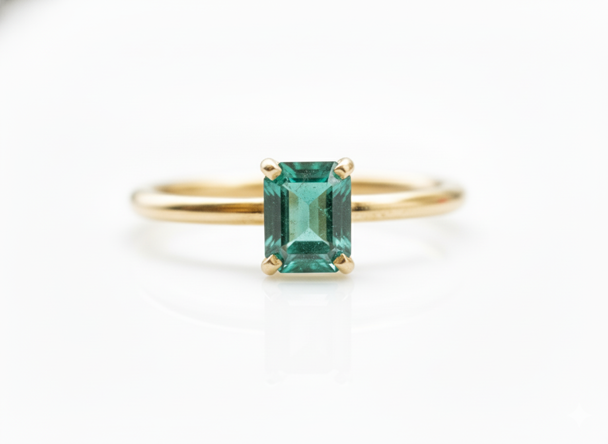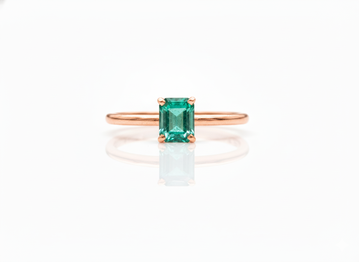14k Solid Gold Emerald Ring: Octagon Solitaire Design - May Birthstone Ring
