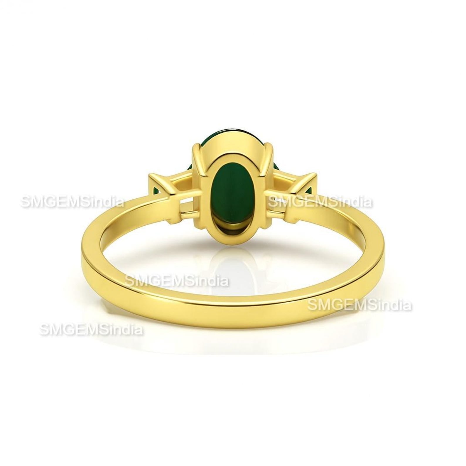 6.70 Carat Oval Shape Cabochon Natural Green Emerald And baguettes Diamond Engagement Ring 14k Solid Gold Ring