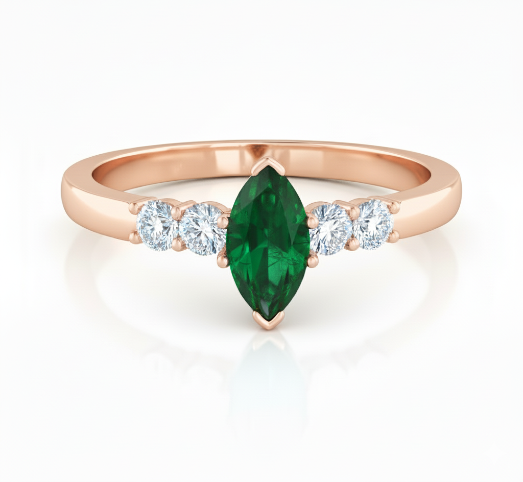 1.05 carat Marquise Cut Emerald & Diamond Ring in 14K Rose Gold – Elegant Gemstone Engagement Ring