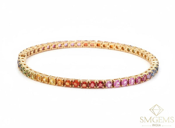 Rainbow Sapphire Tennis Bracelet 14k Gold Round Natural Multi Gemstone