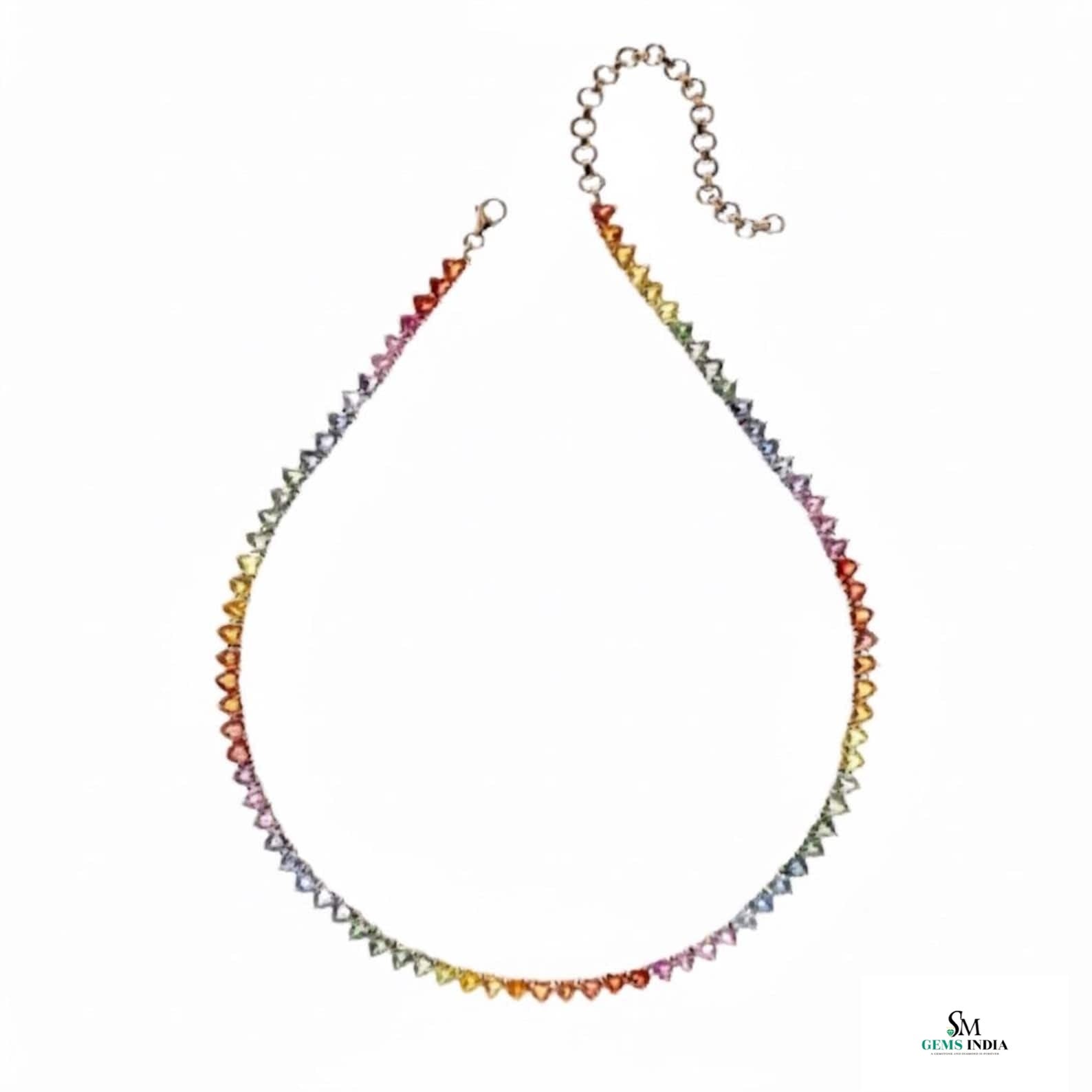 Rainbow Heart Sapphire Necklace in 14k Gold Multicolor Gemstone Tennis Chain