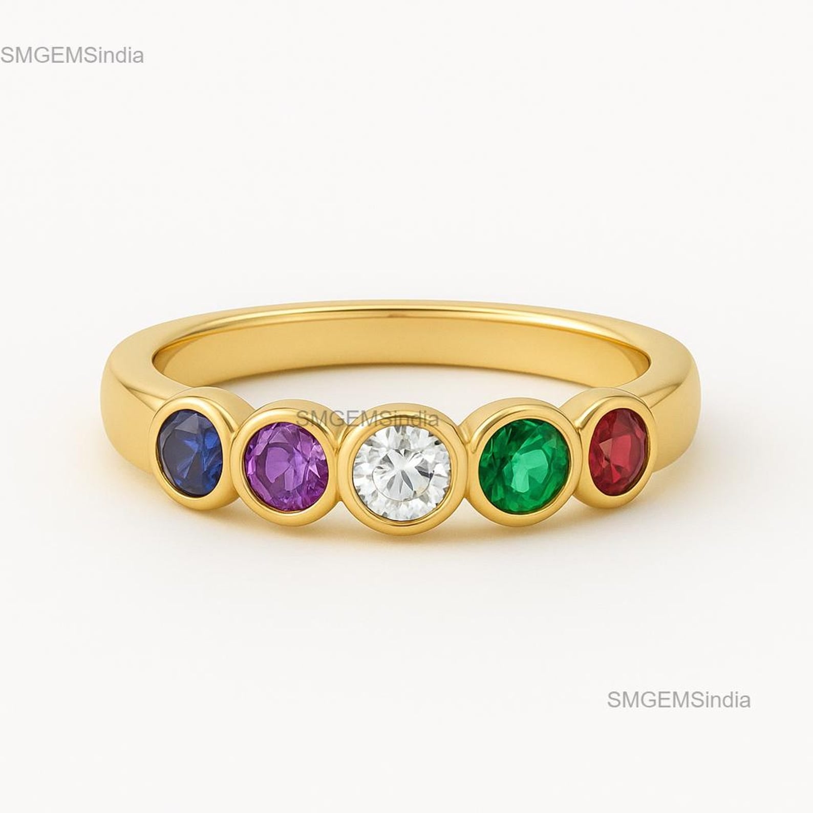 Natural Round shape Rainbow Sapphire Eternity Band Ring 14k Gold Five Chakras Gemstone