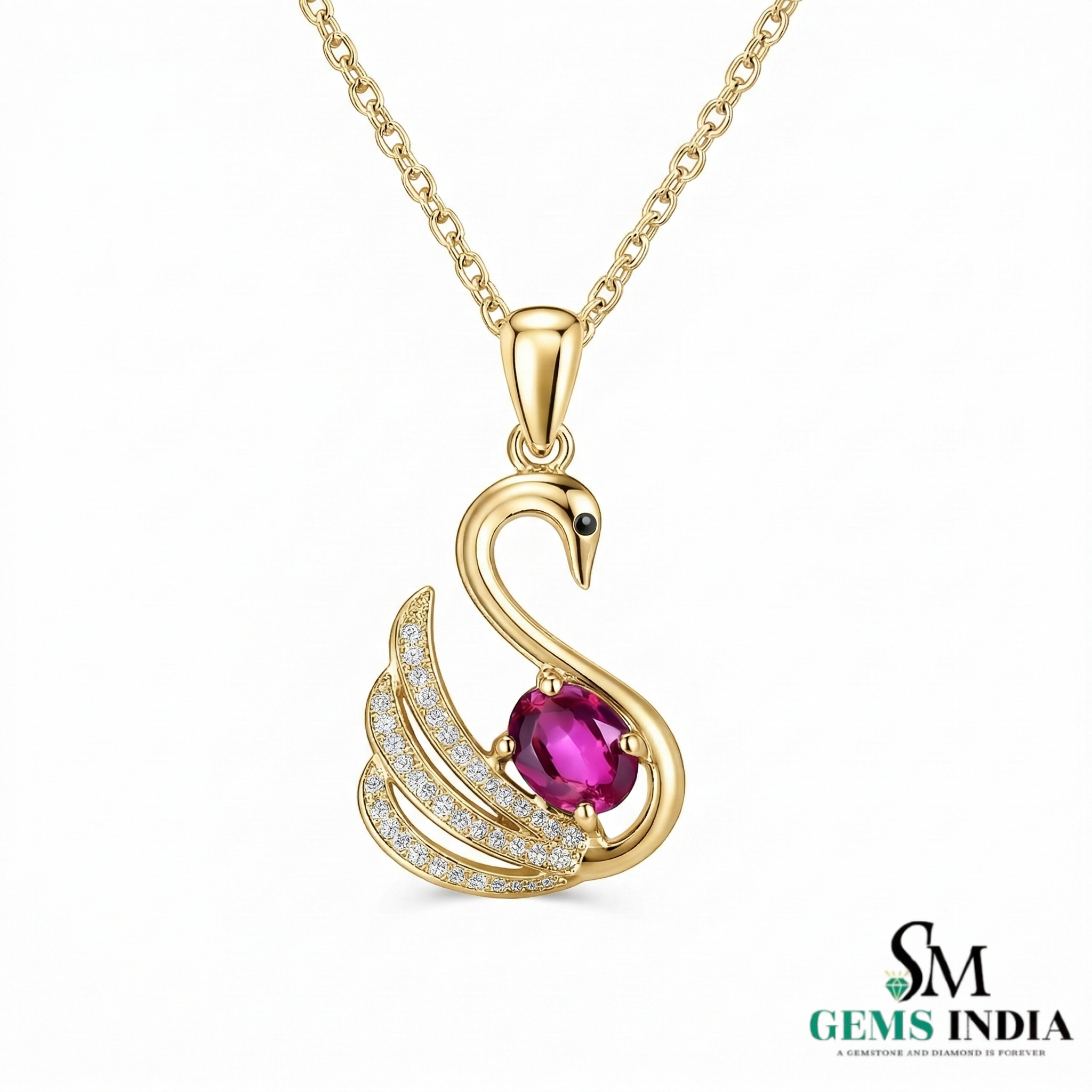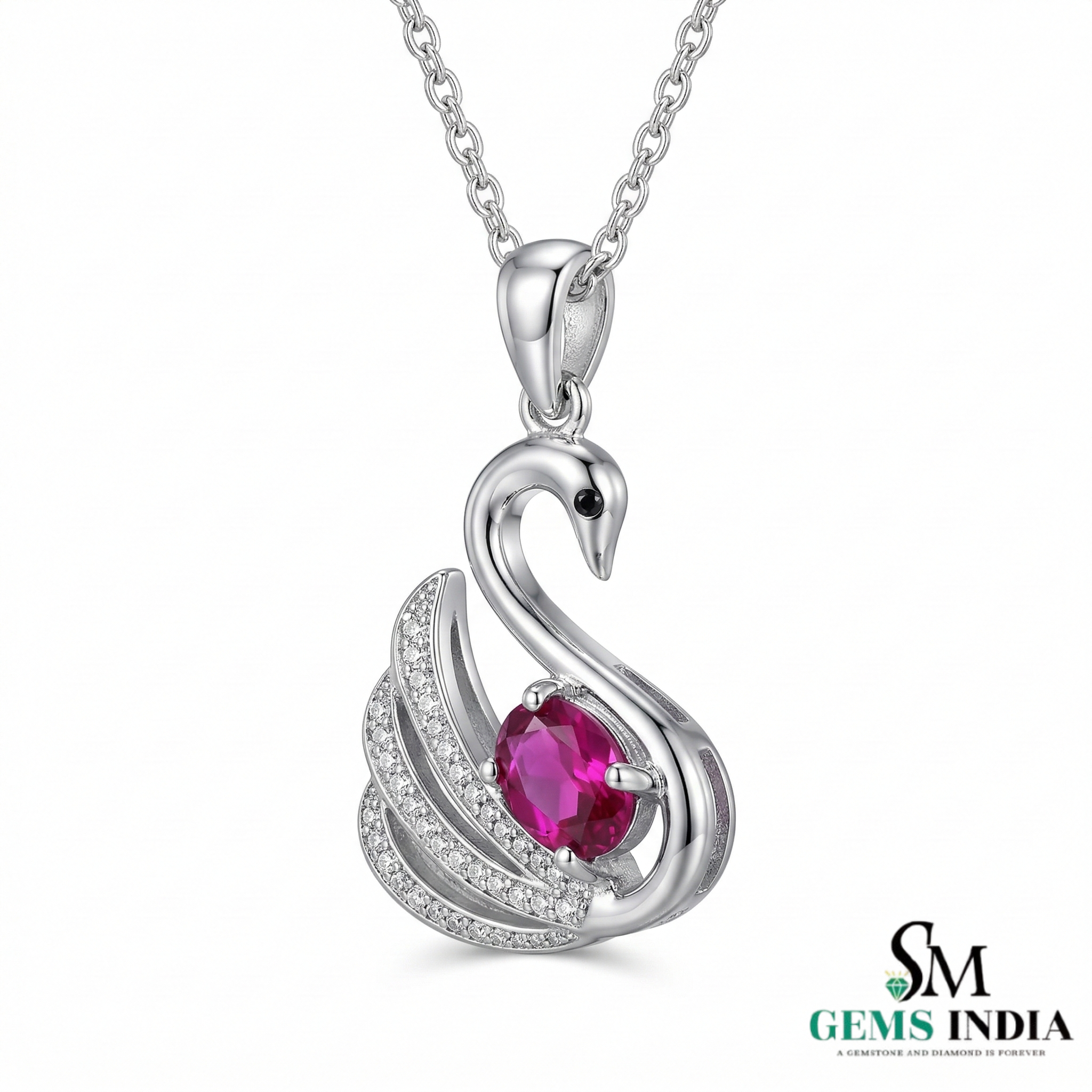 Swan Design Ruby Pendant with Diamond Accents Unique Animal Design Jewelry