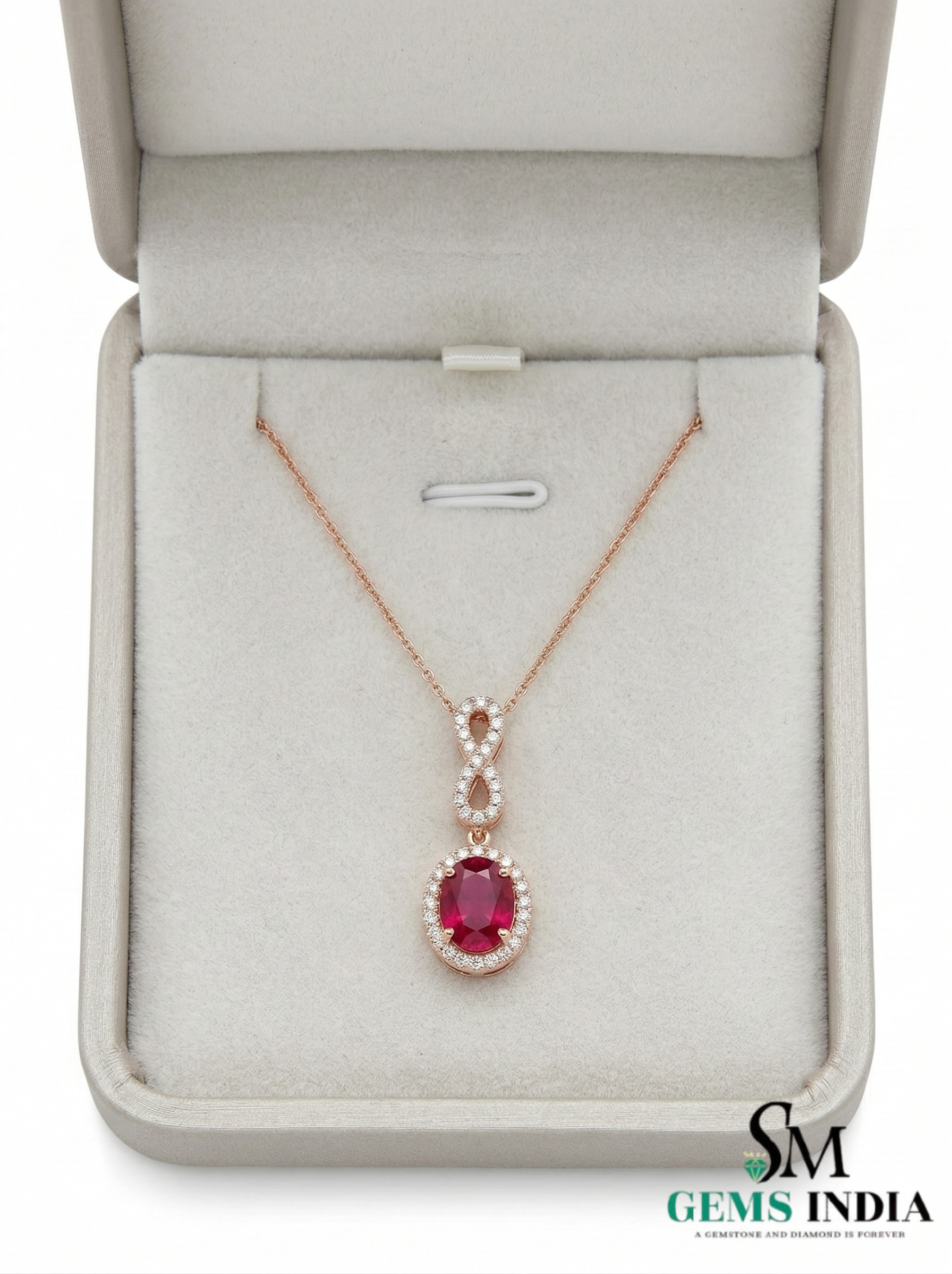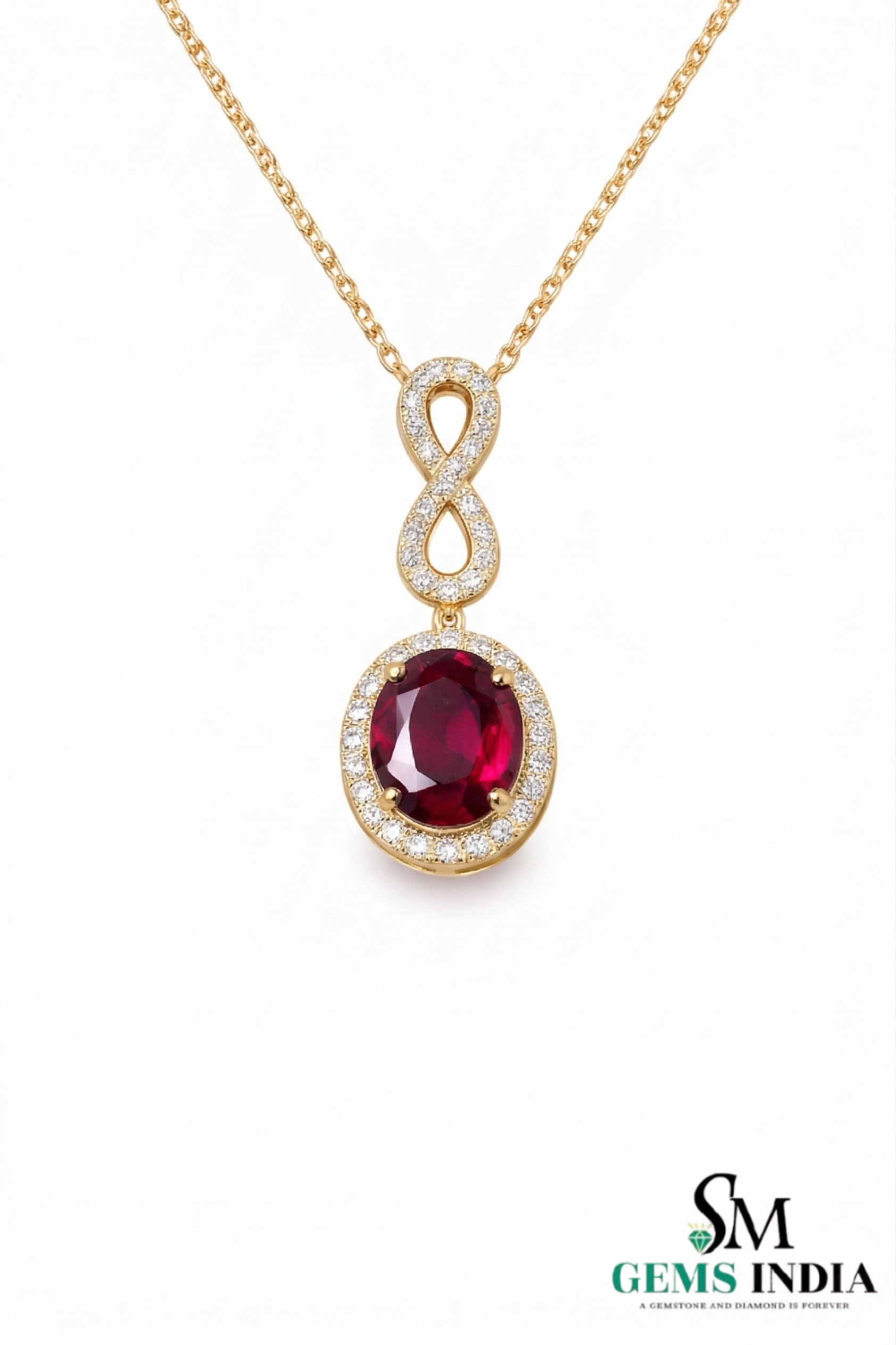 Infinity Style Ruby and Diamond Pendant Necklace July Birthstone Jewelry