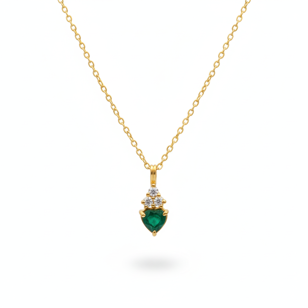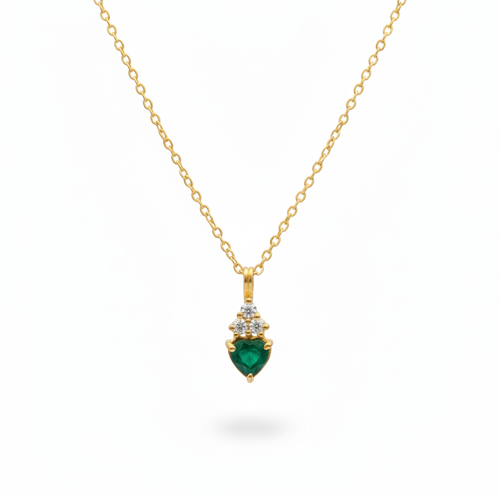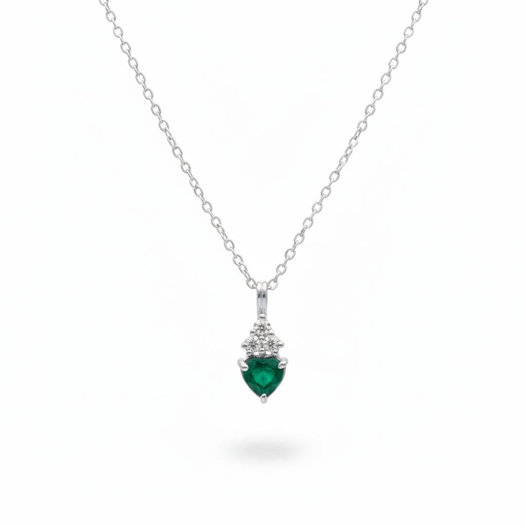 1.90 carat Natural Emerald Heart Pendant with Diamond Accents in 14k Gold