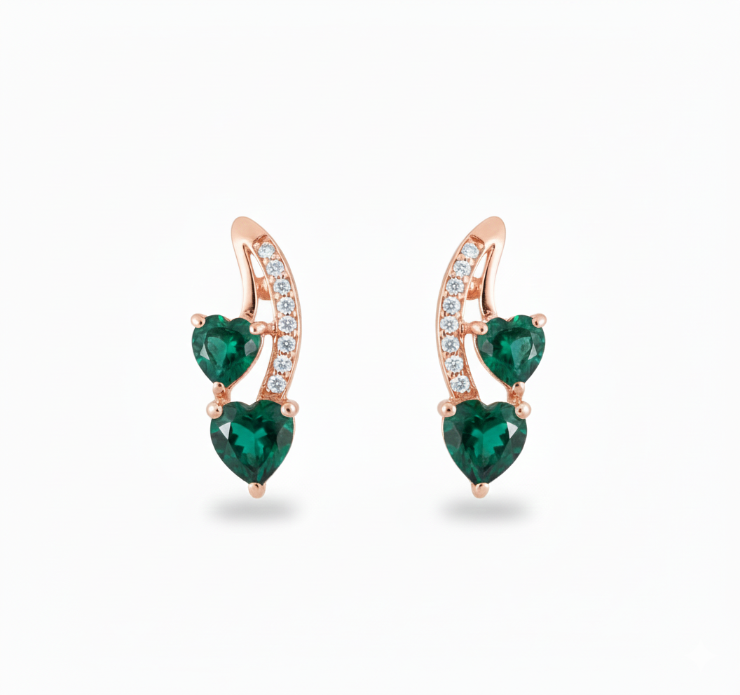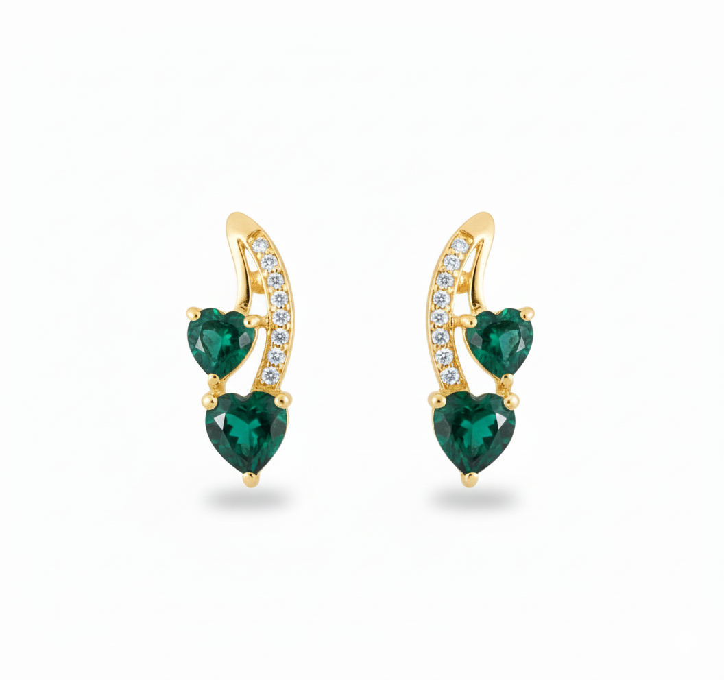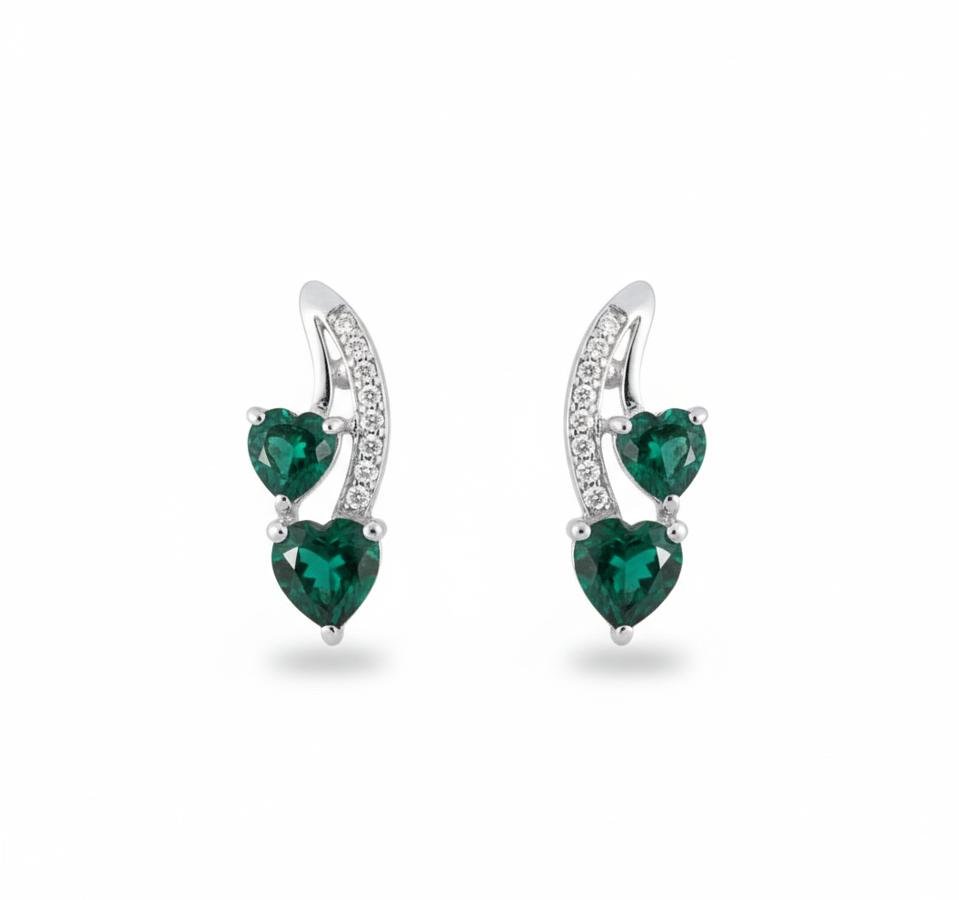 3.50 carat Green Natural Emerald Heart Drop Earrings Sparkling Diamond Curve