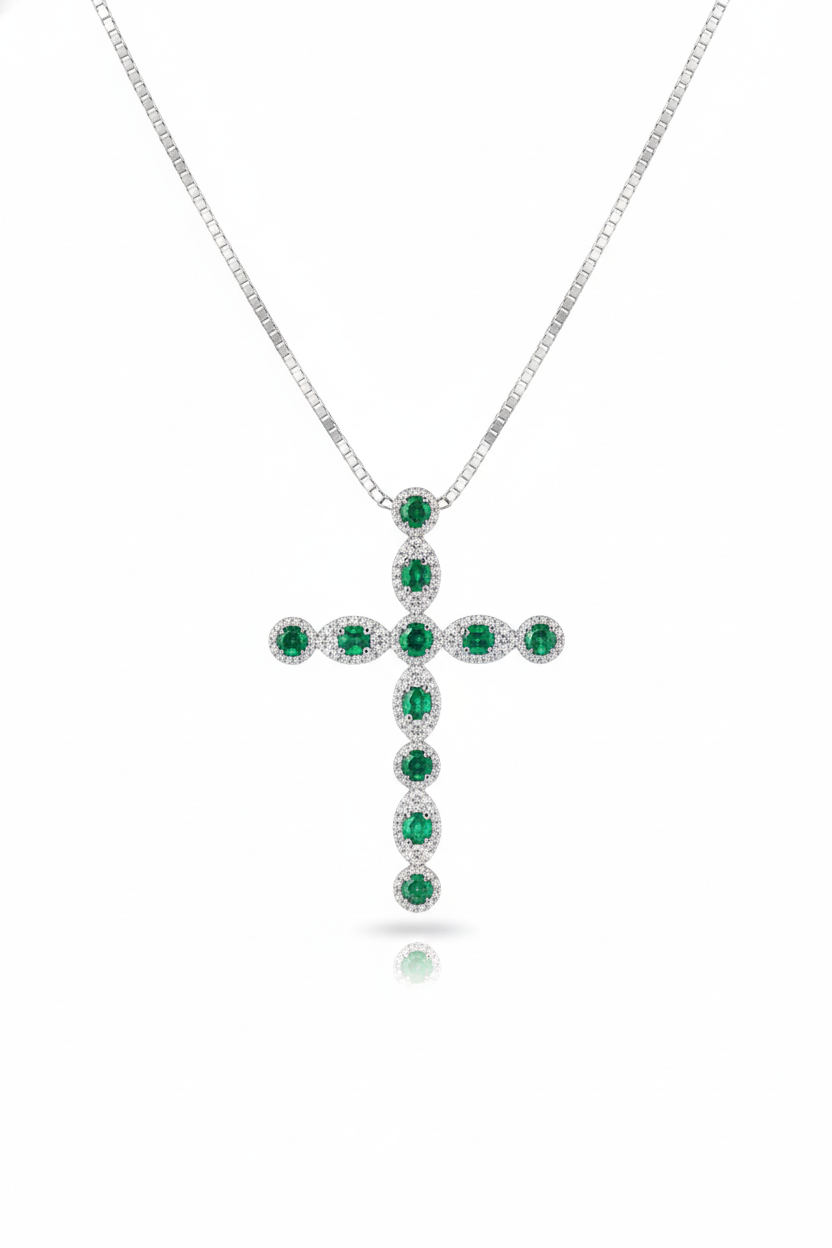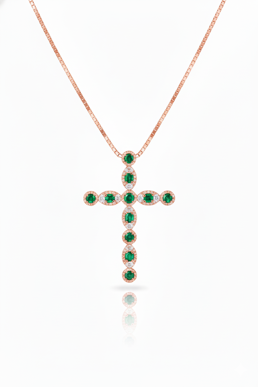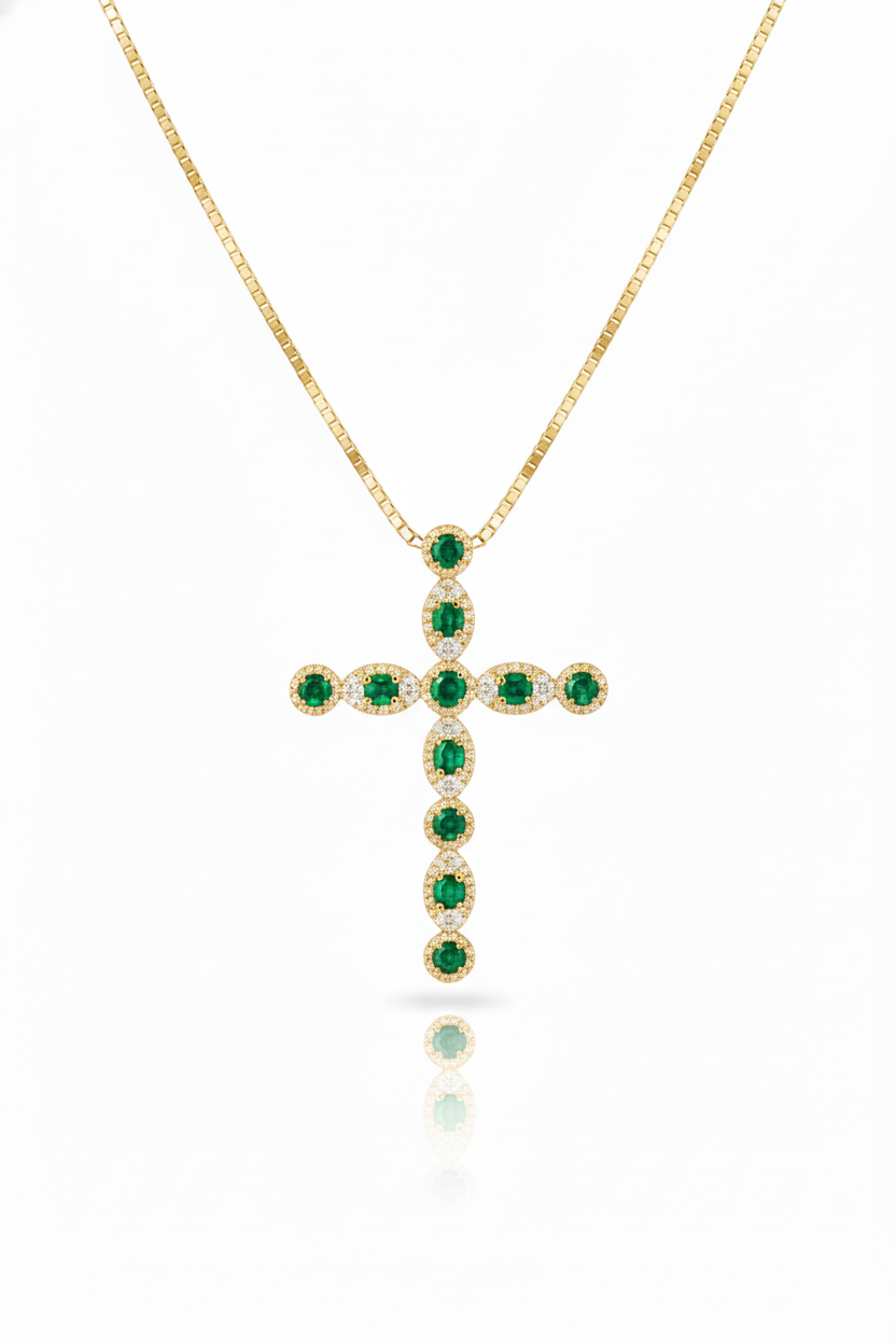 2.80 carat 14k Solid Gold Cross Pendant Round Natural Emerald Faith Jewelry Gift