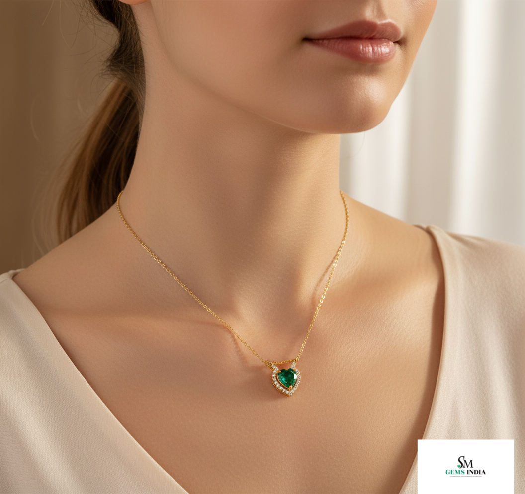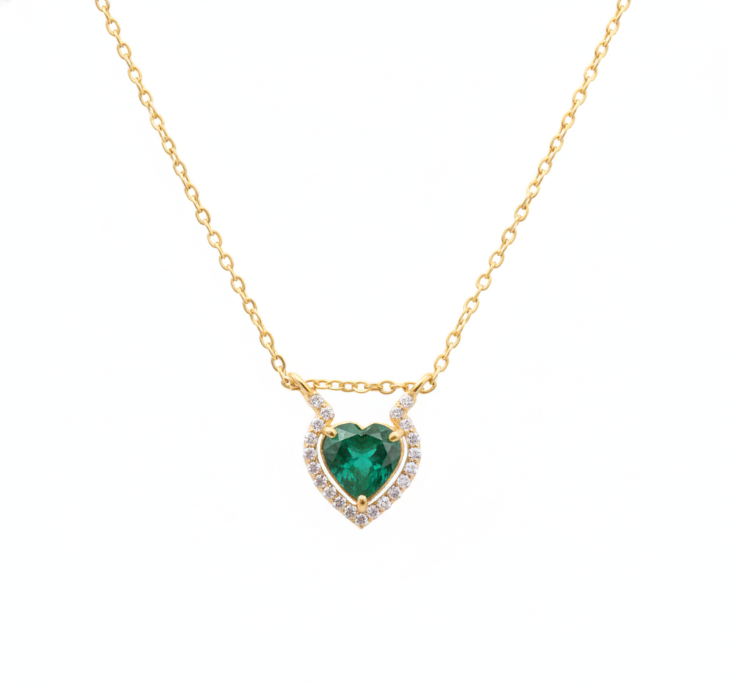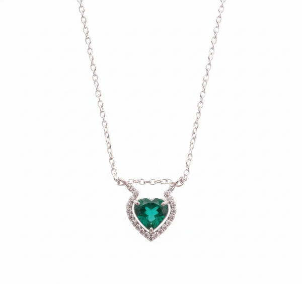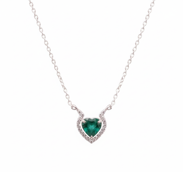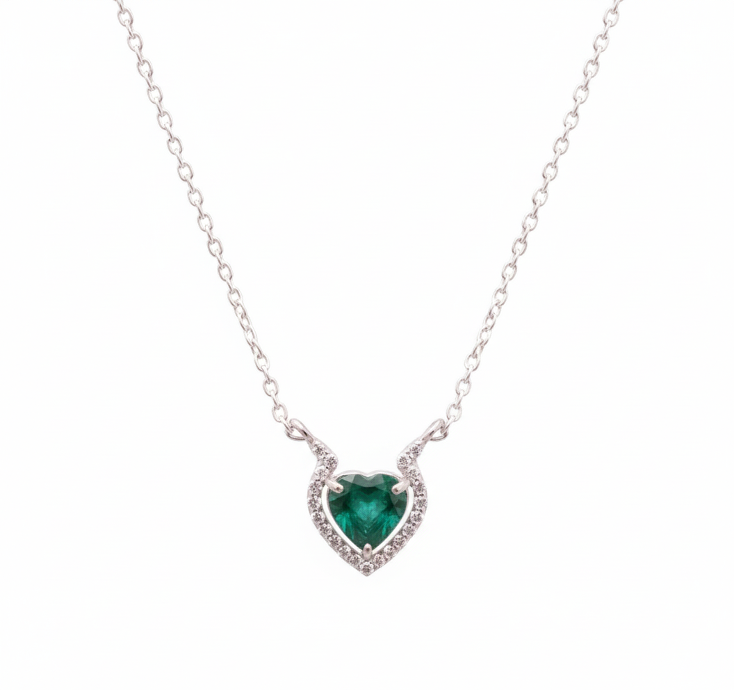 Romantic Natural Emerald Heart Necklace Green Gemstone with Diamond Frame Symbol of Love and Elegance