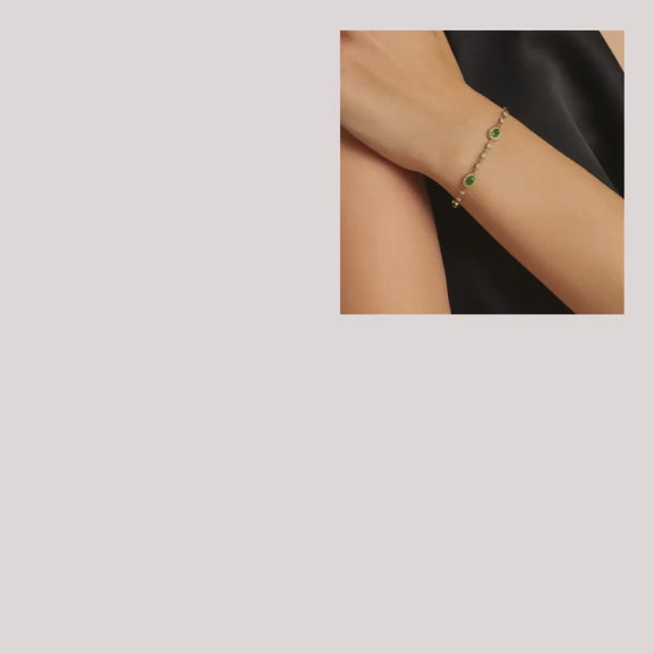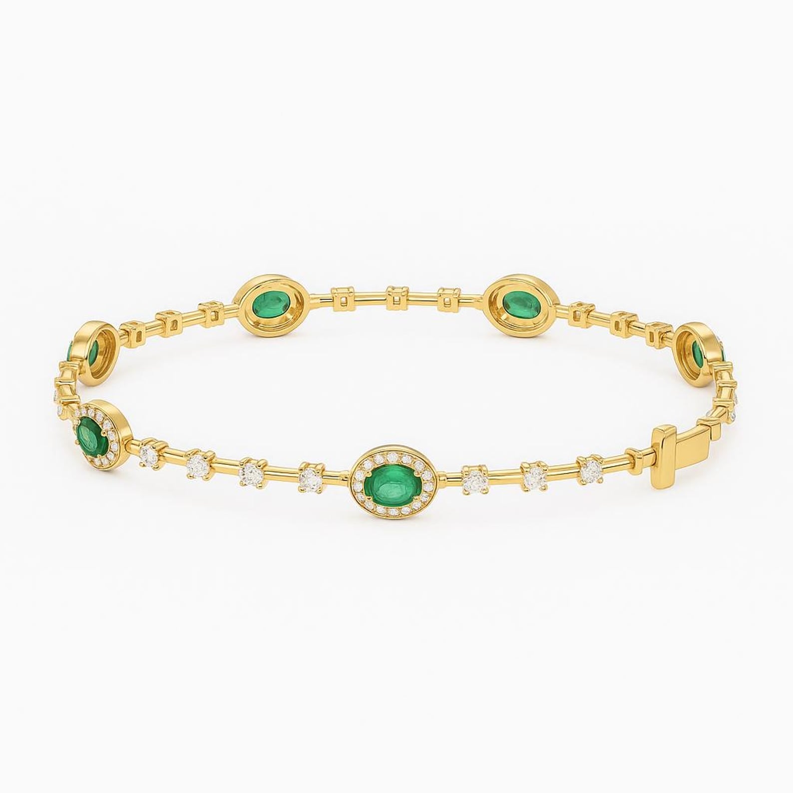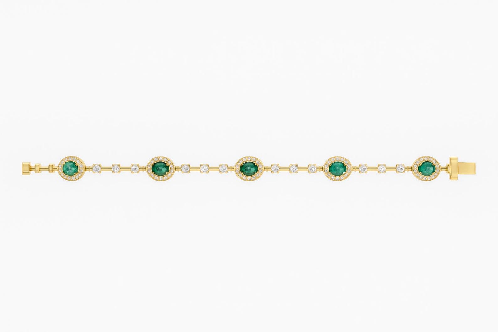 Tennisarmband aus Natur-Smaragden im Ovalschliff und Diamanten in Gold | Tennisarmband aus Natur-Smaragden und Diamanten in Gold | Tennisarmband mit großen Smaragden im Ovalschliff
