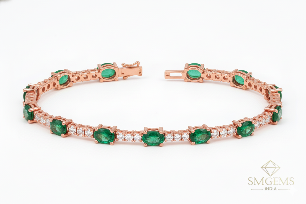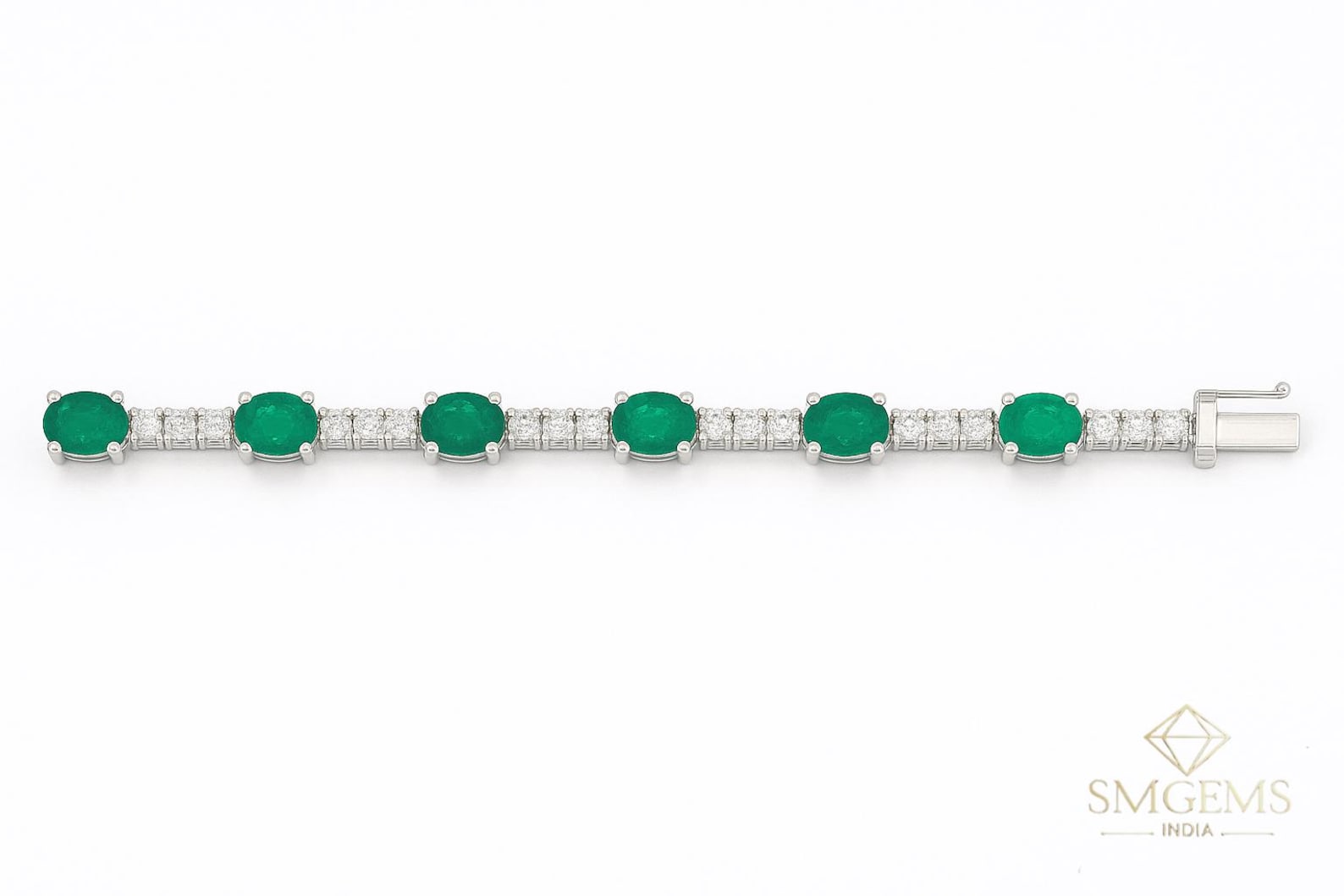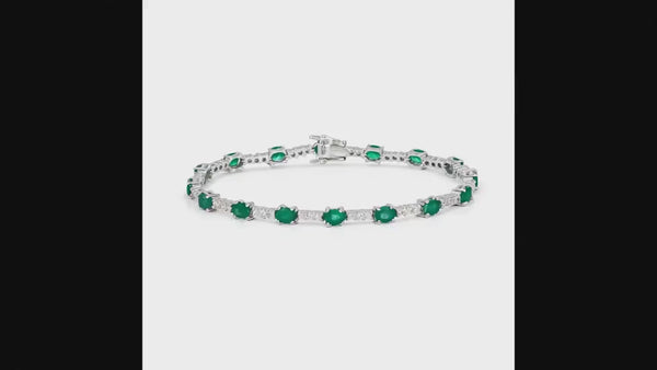 Tennisarmband aus Natur-Smaragden im Ovalschliff und Diamanten in Gold | Tennisarmband aus Natur-Smaragden und Diamanten in Gold | Tennisarmband mit großen Smaragden im Ovalschliff