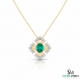 Oval shape Natural Emerald & Diamond Swirl Pendant in 18k Gold