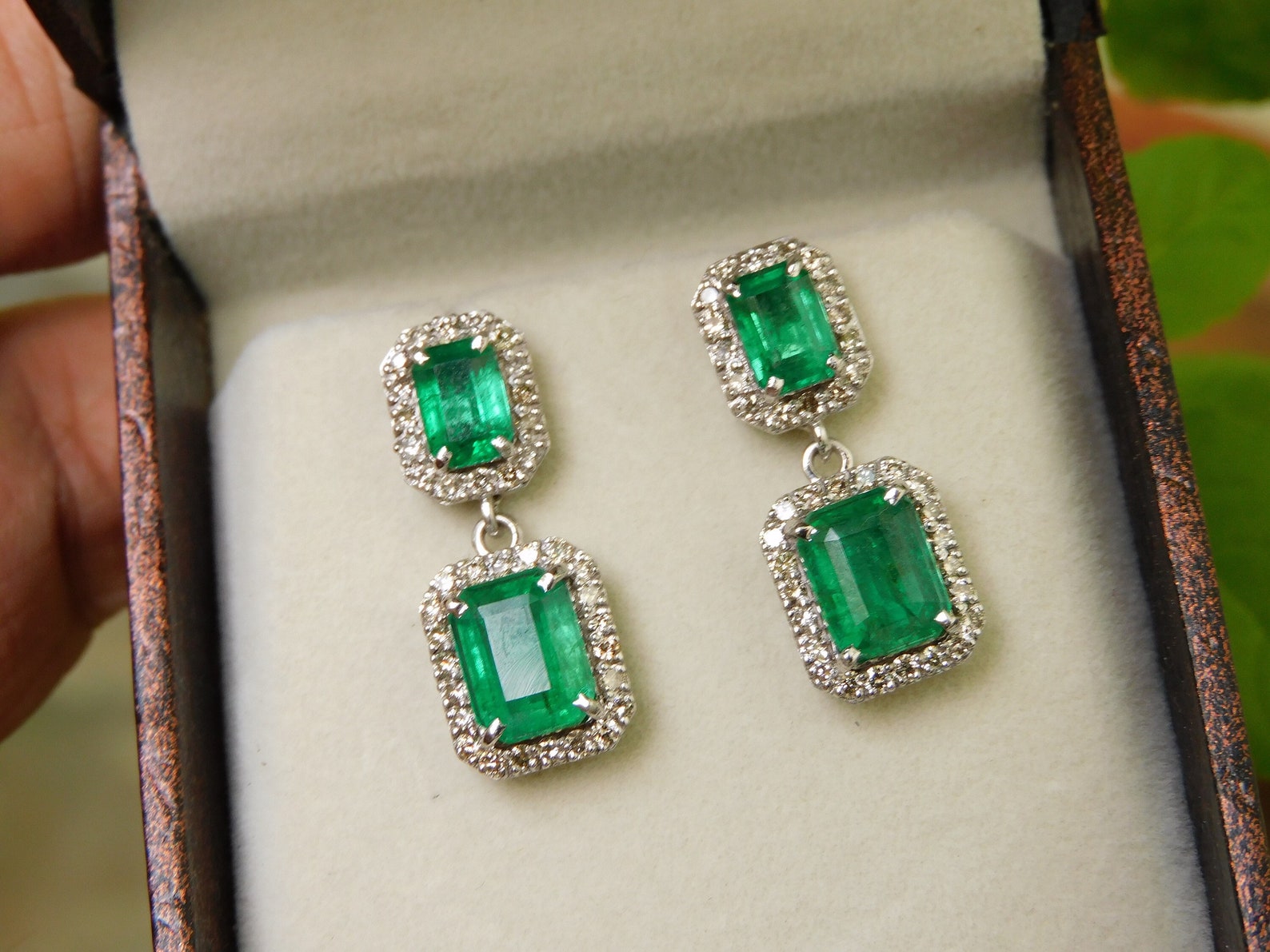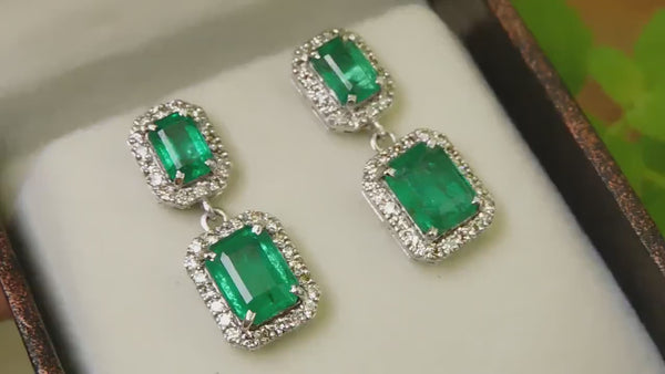 Überraschen Sie Ihre Frau mit diesen wunderschönen, natürlichen Smaragd- und Diamant-Hängeohrringen.