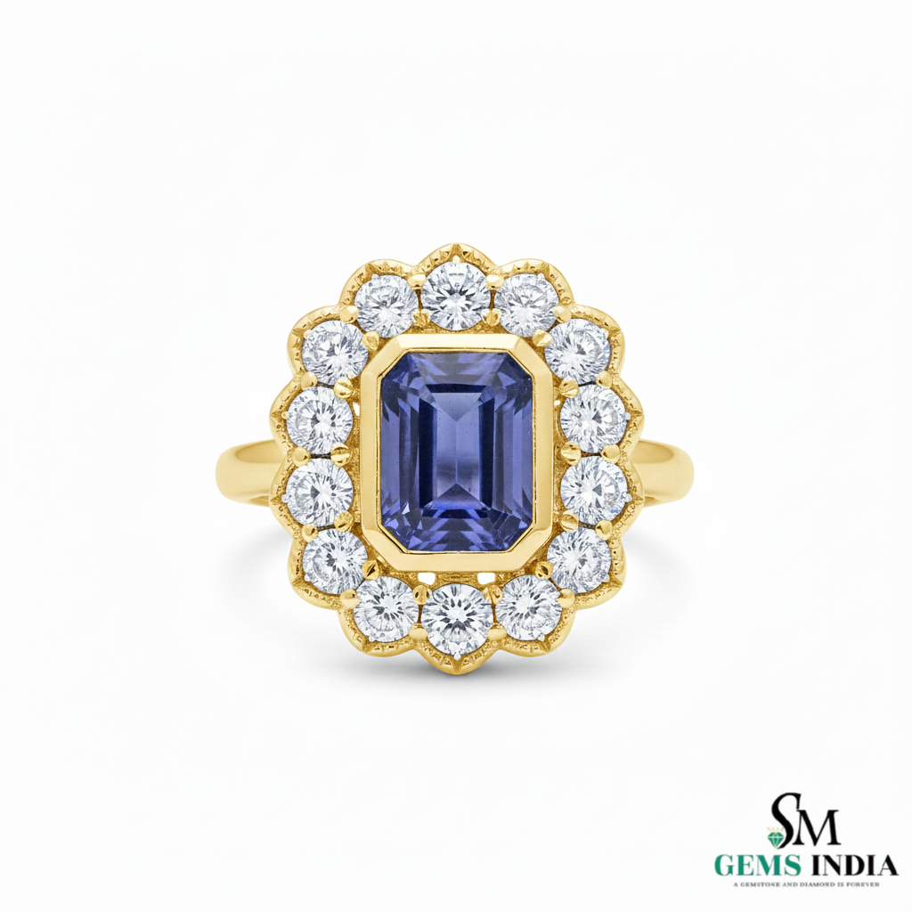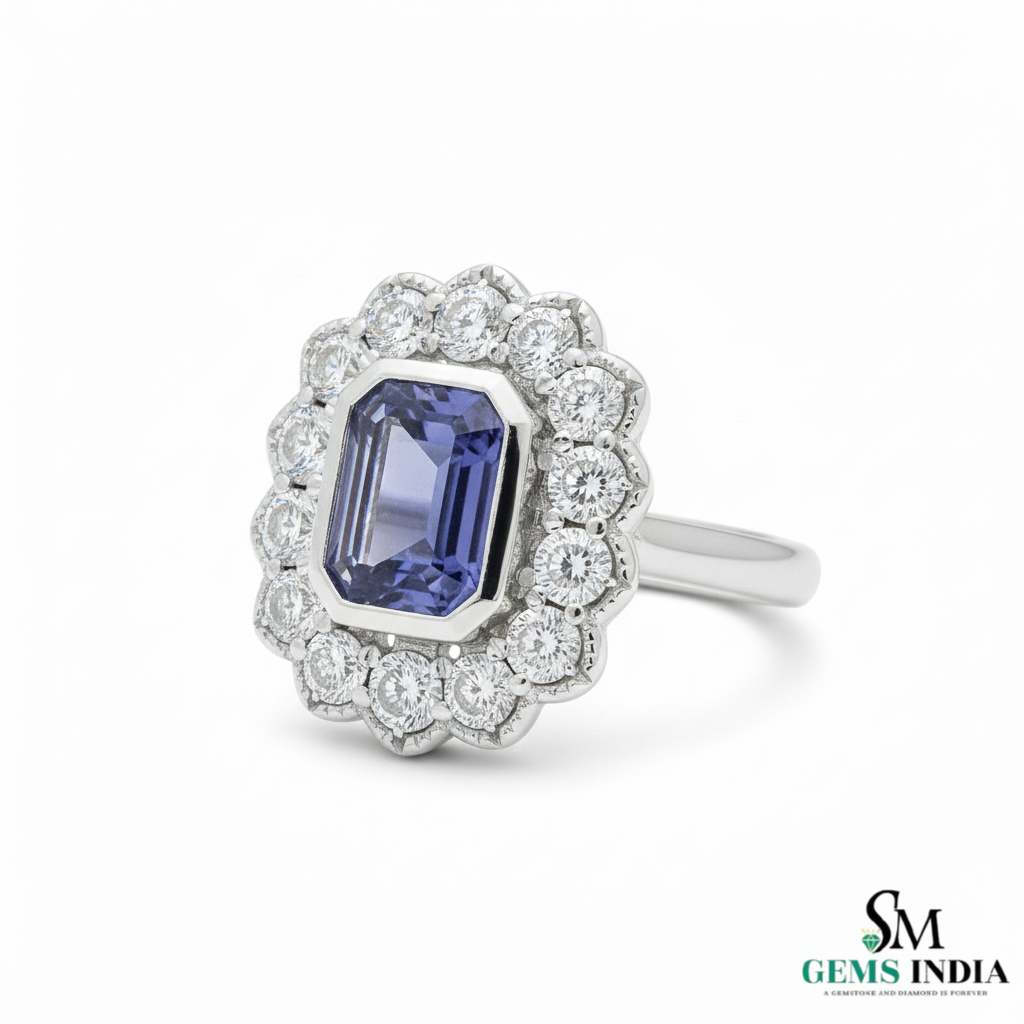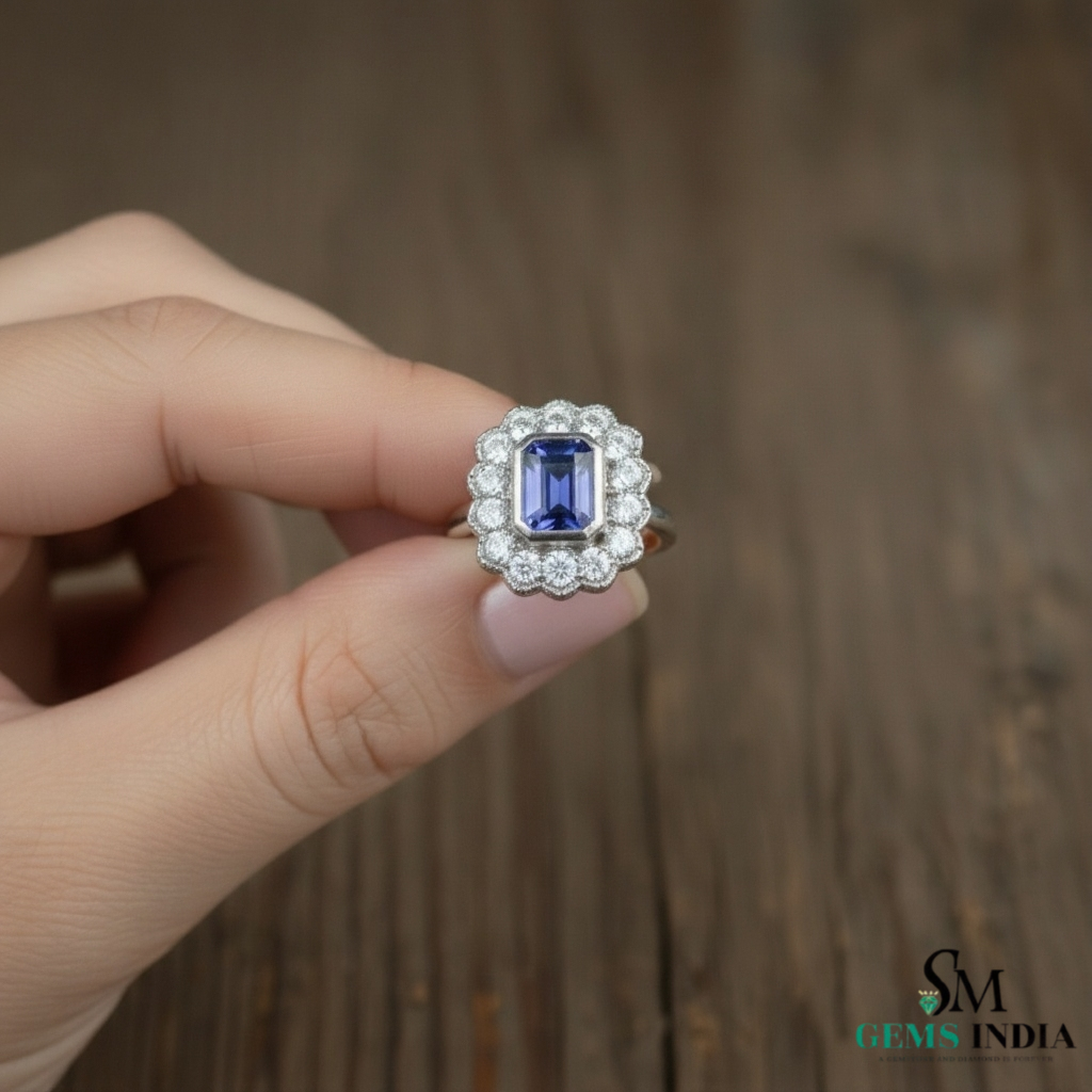 Natural Emerald Cut Tanzanite Ring with Diamonds – Vintage Elegance