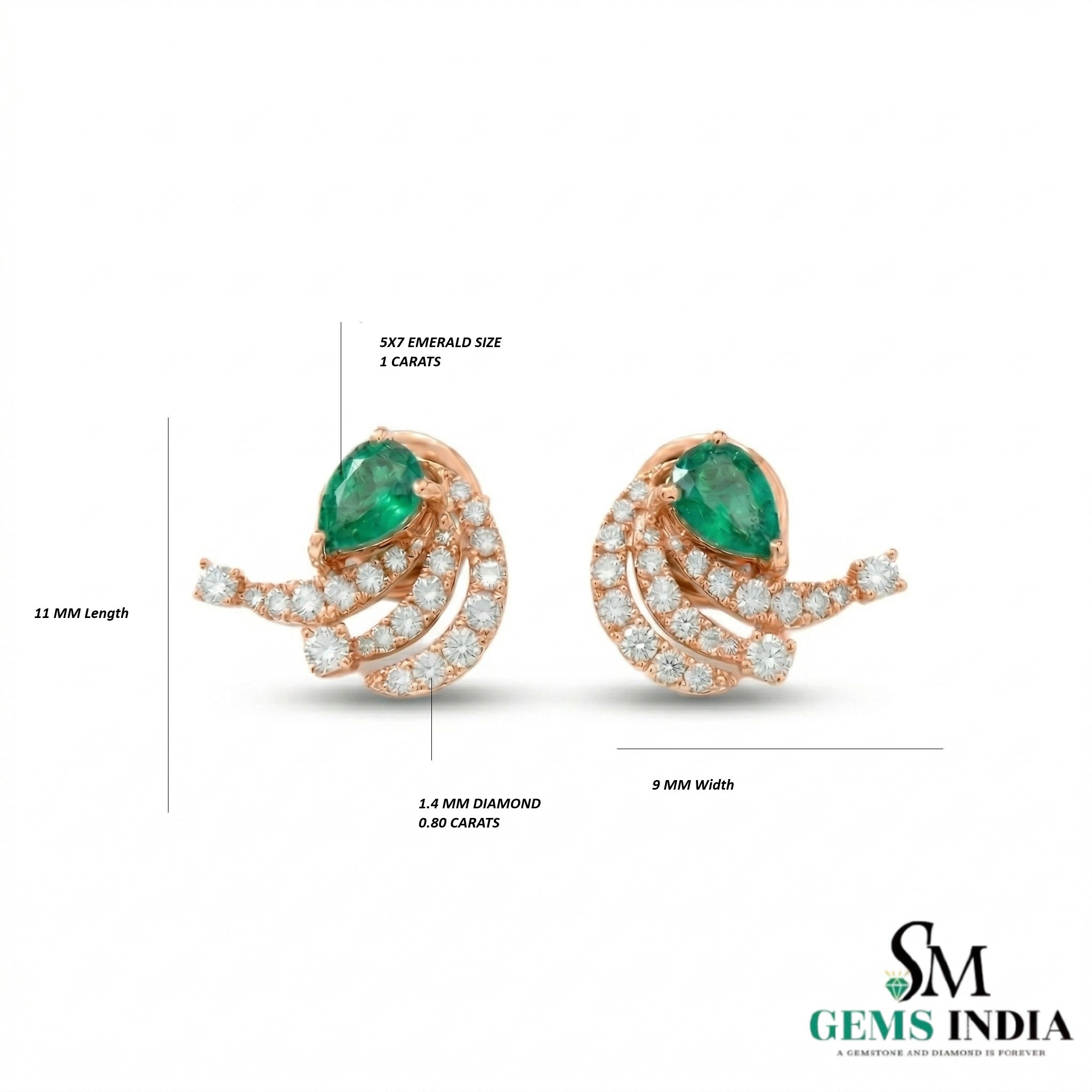 Pear Shape Emerald Earrings with Diamond Swirl – Fine Gold Jewelry