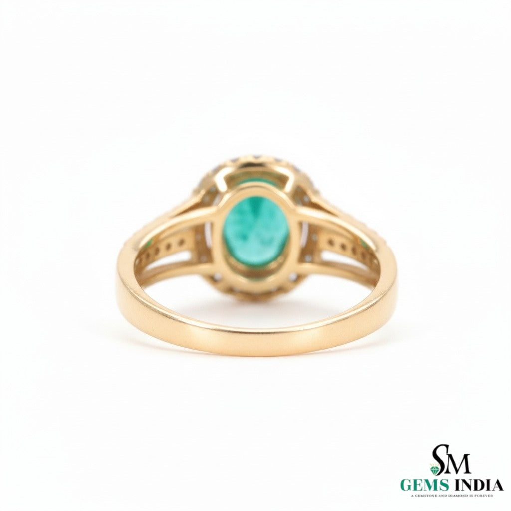 18K Oval Shape Natural May Birthstone And Diamond Engagement Ring