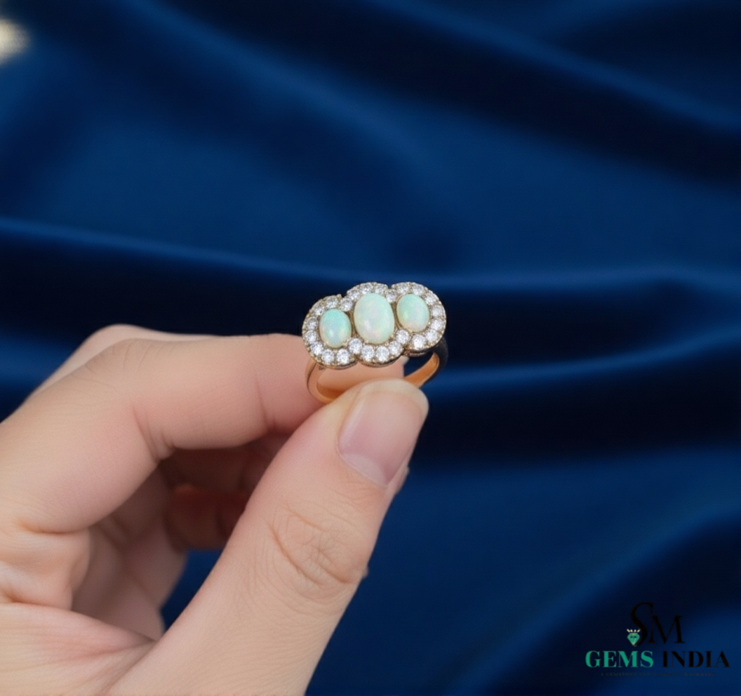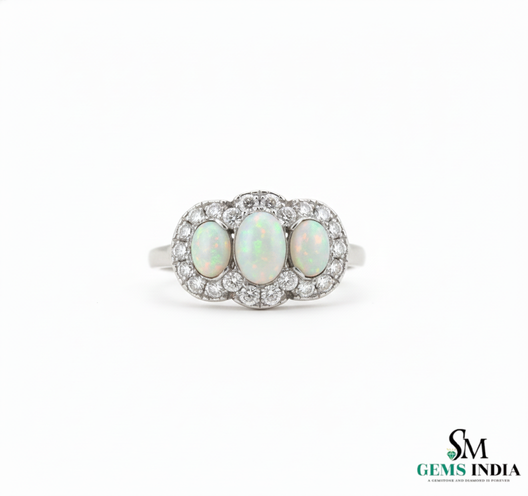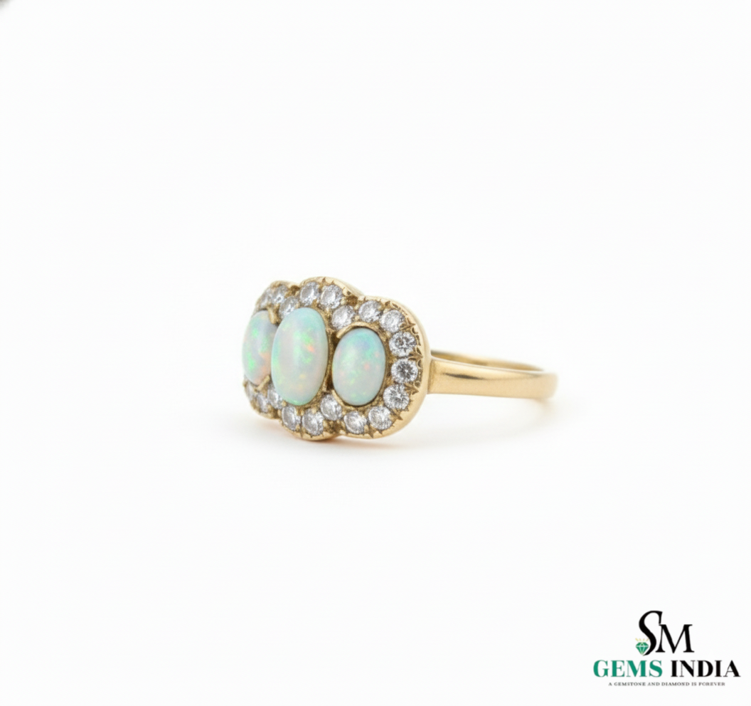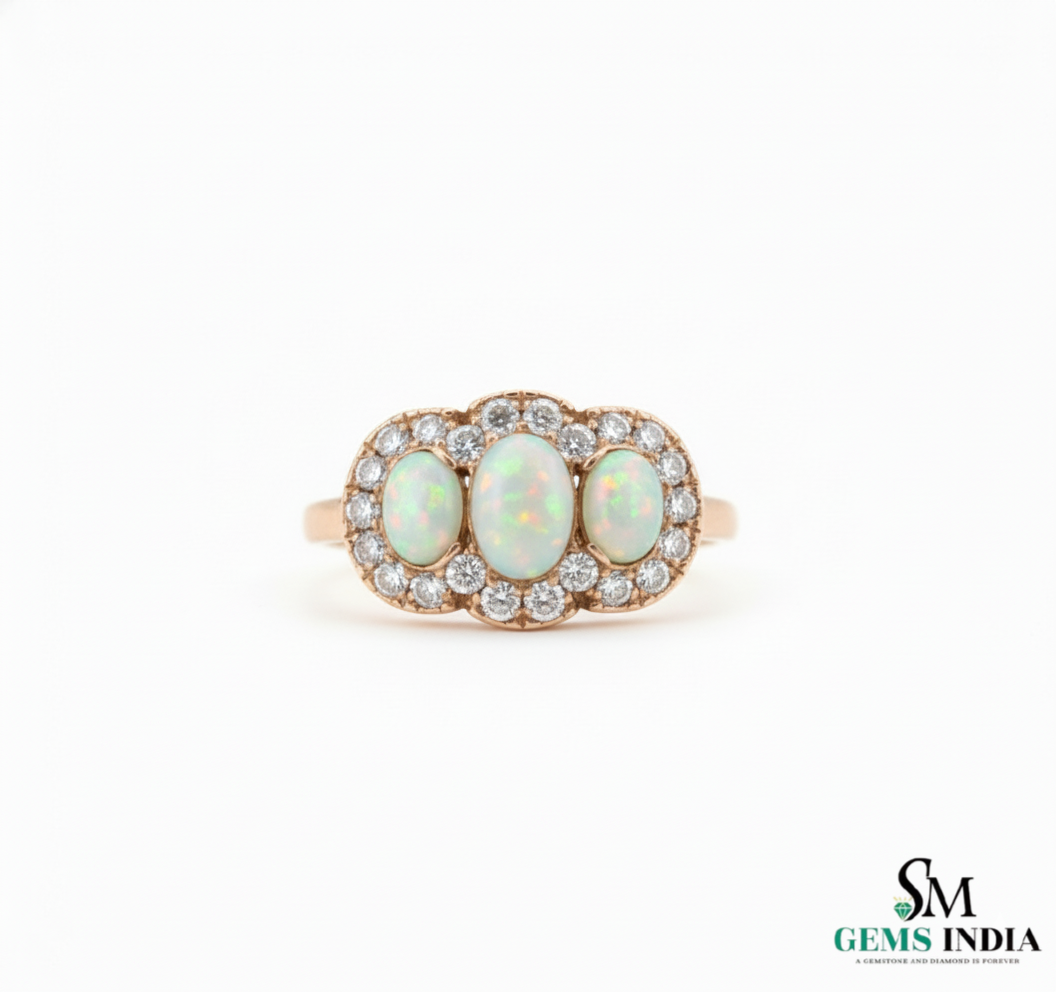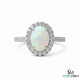 Oval and round Opal Diamond Halo Ring Vintage Style Gemstone Ring