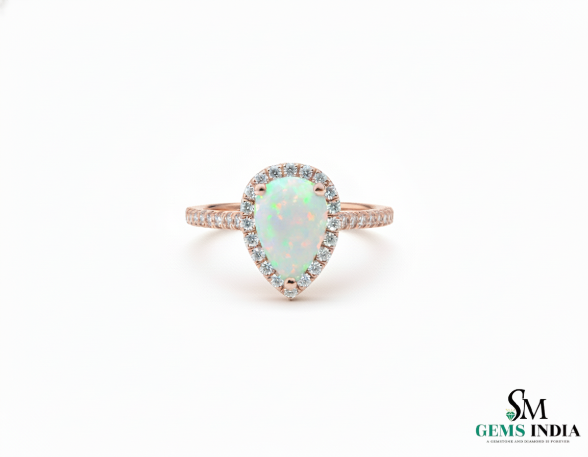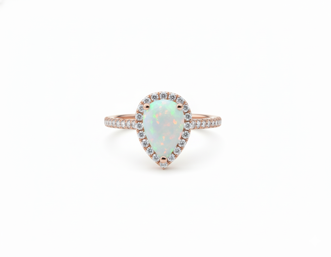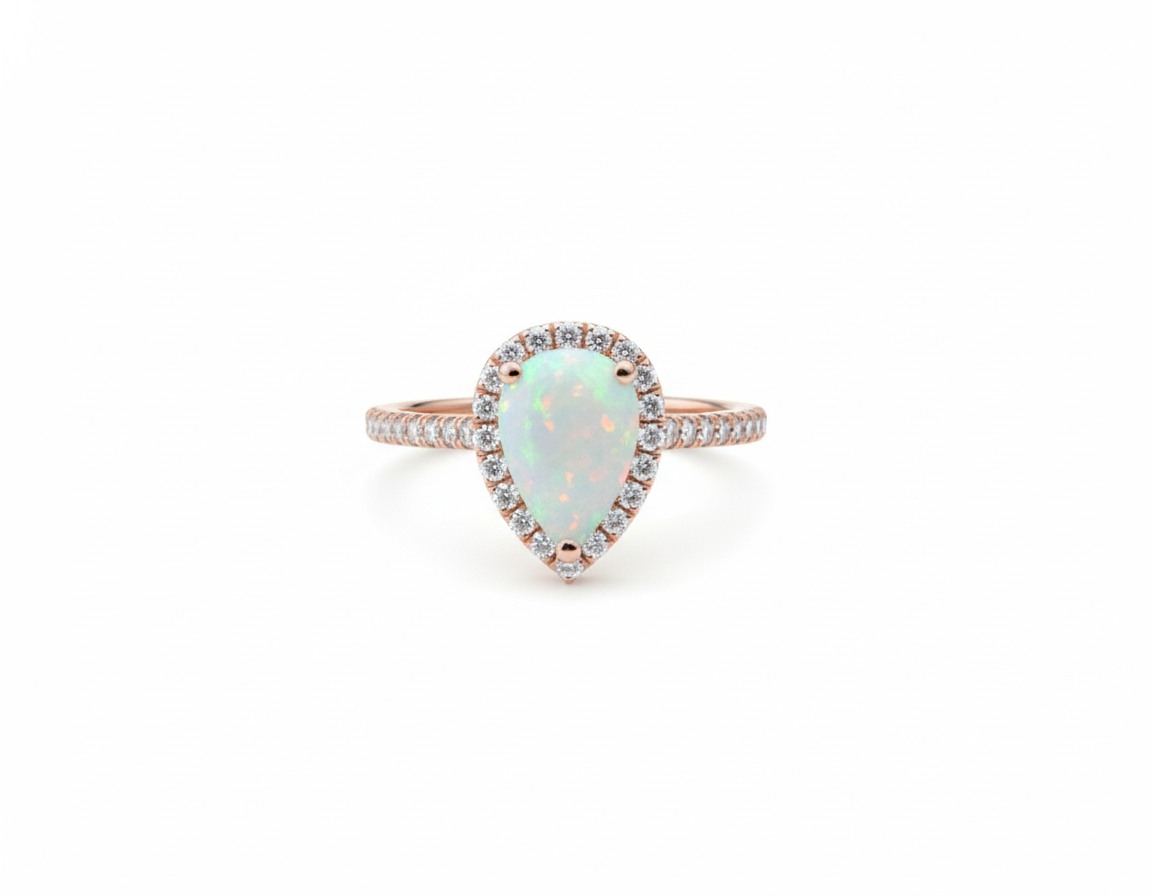 Pear Shape Opal Diamond Rin...- 8 / 14K Rose Gold - $937.25