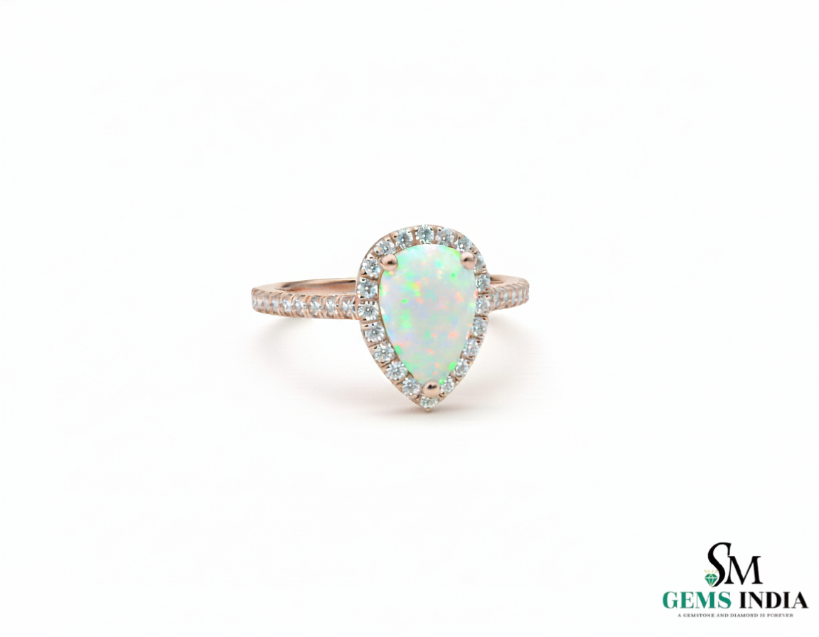 Pear Shape Opal Ring with Diamonds 14k and 18K Gold Statement Ring