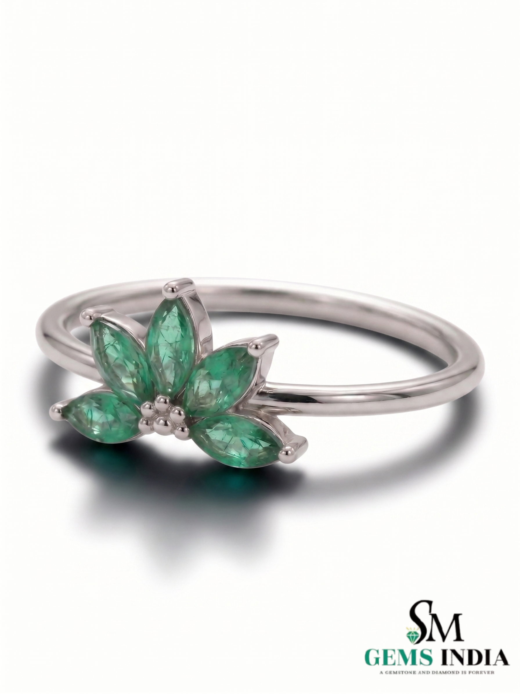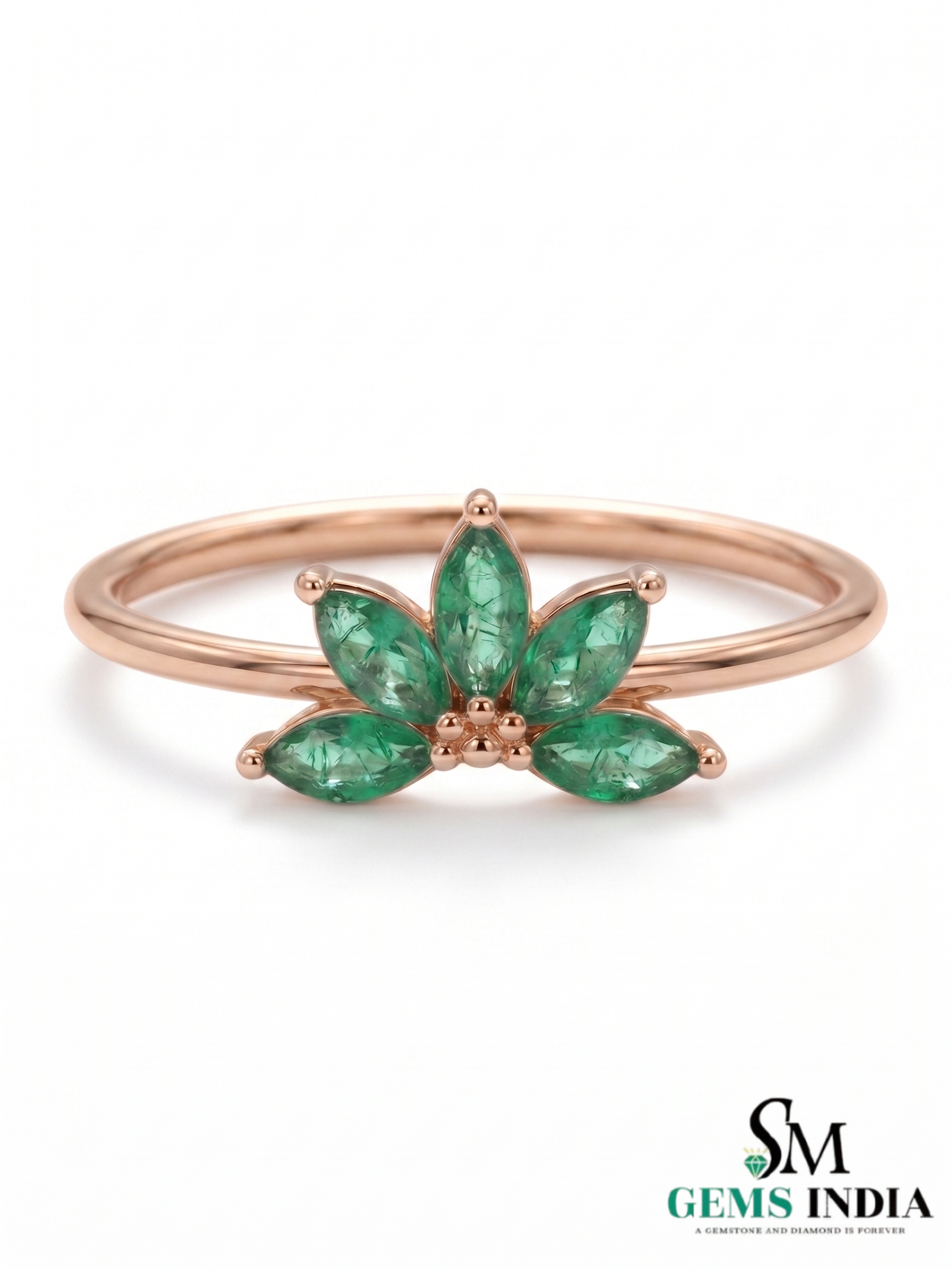 Natural Marquise Cut Emerald Cluster Ring in Solid 14K Gold – Elegant Floral Fine Jewelry Ring