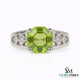 Elegant Oval Green Peridot Ring with Diamond Side Cluster