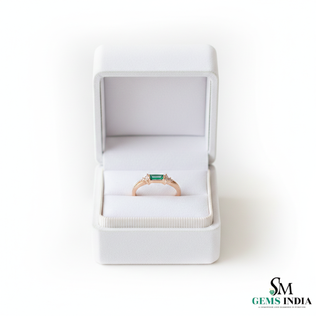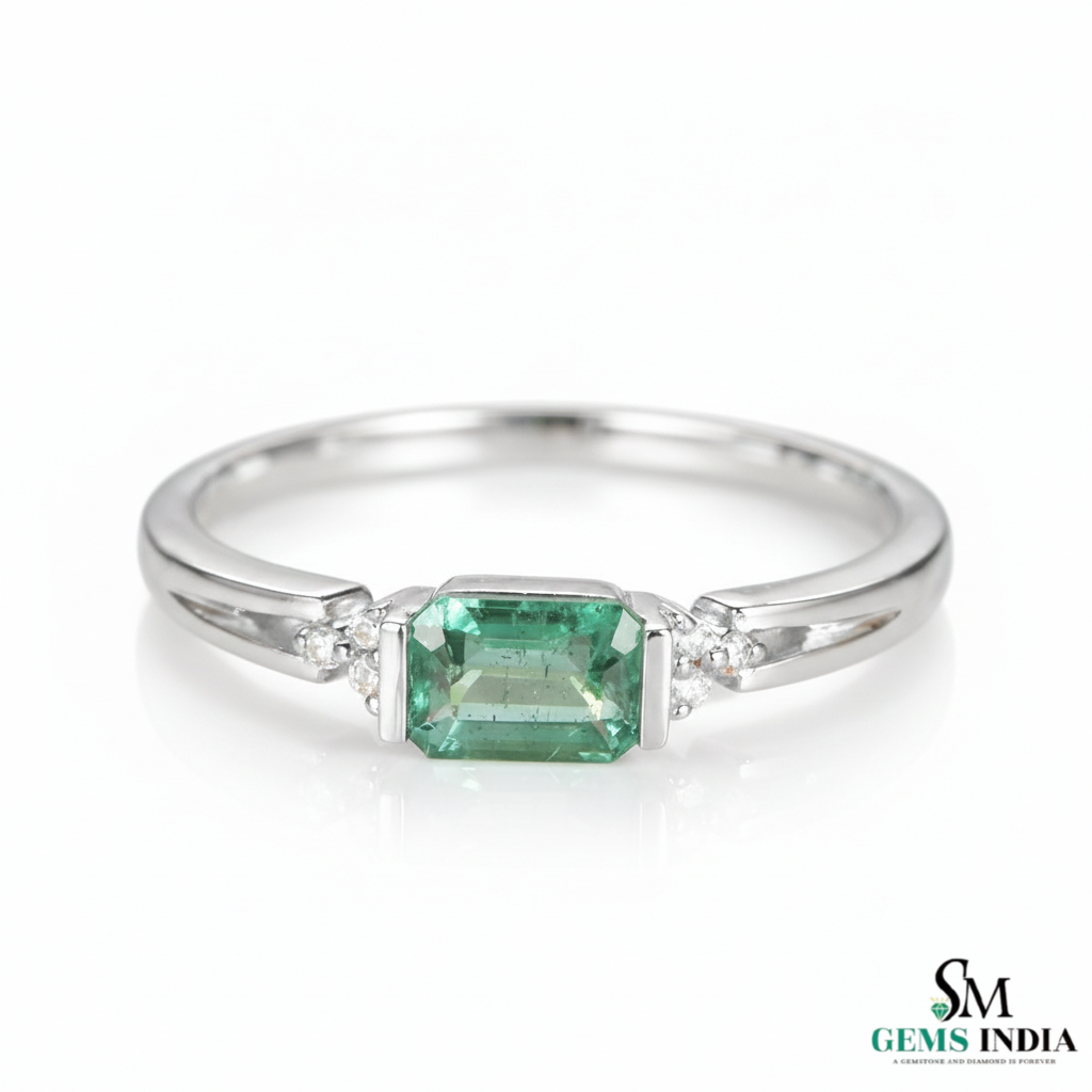 Emerald Cut Green Emerald Ring with Diamond Side Accents – Elegant Fine Jewelry Style