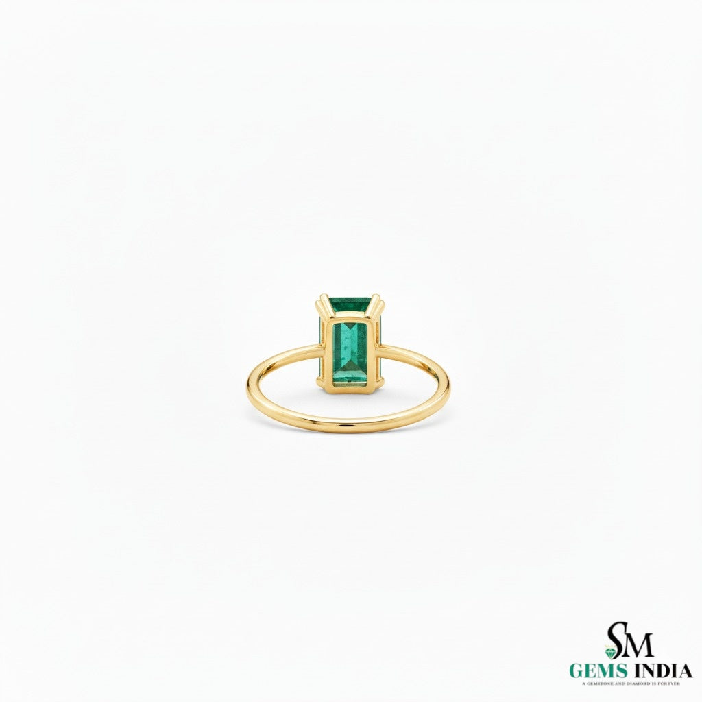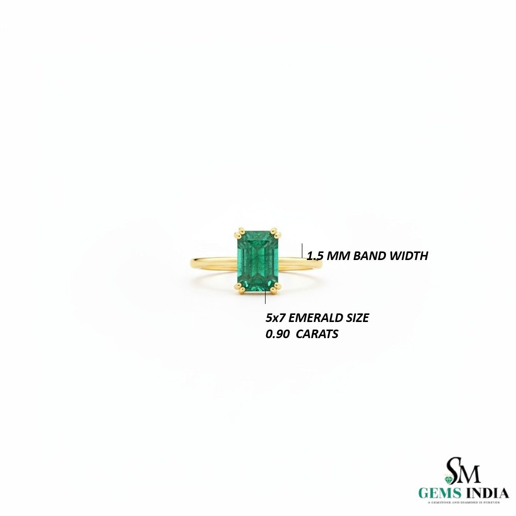 0.90 Carat Emerald-Cut Green Emerald Solitaire Ring - Green Gemstone Jewelry