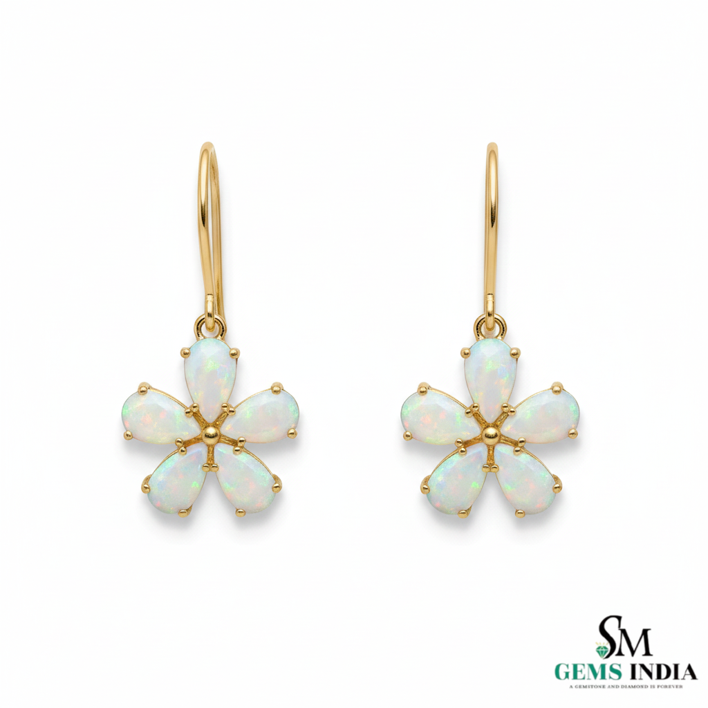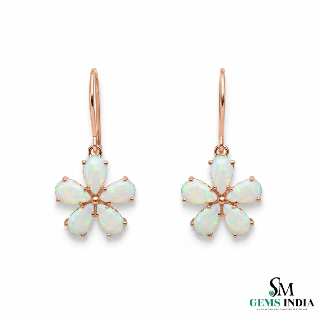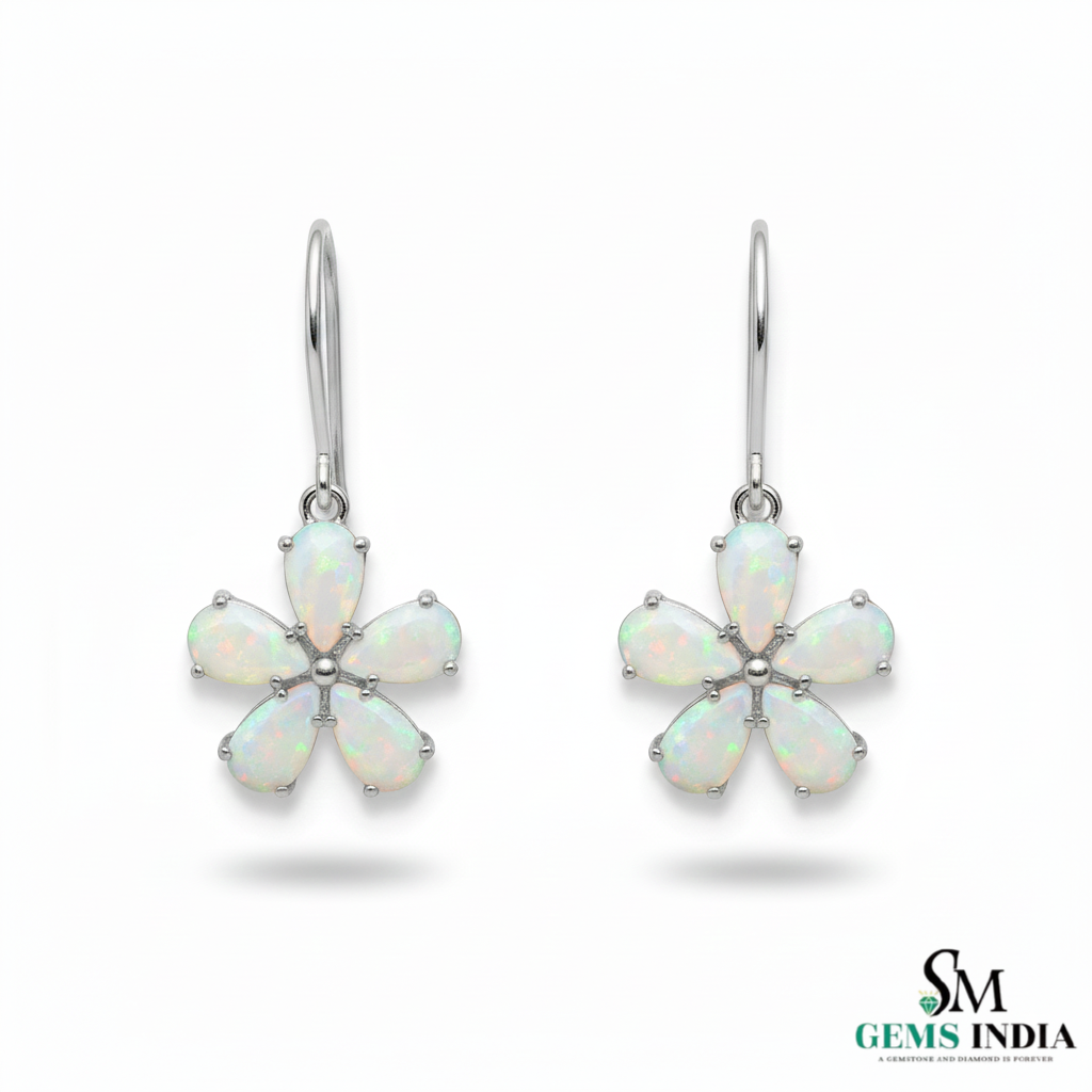 Floral Delicate Pear Opal Flower Hanging Earrings Birthday gift earrings