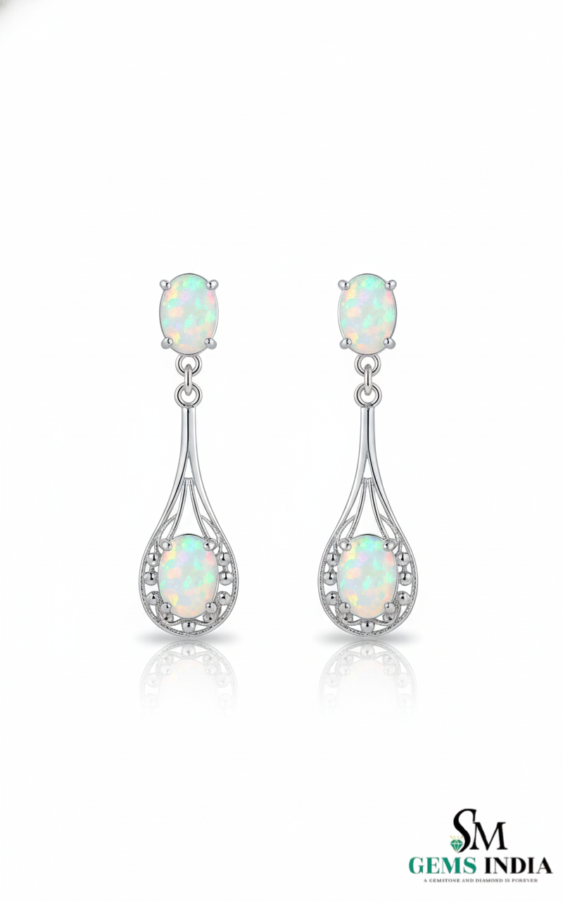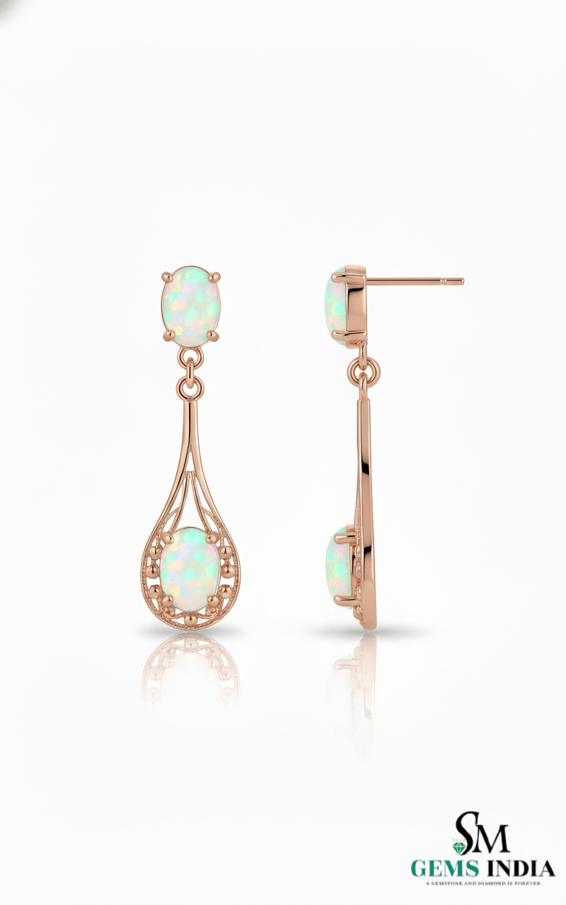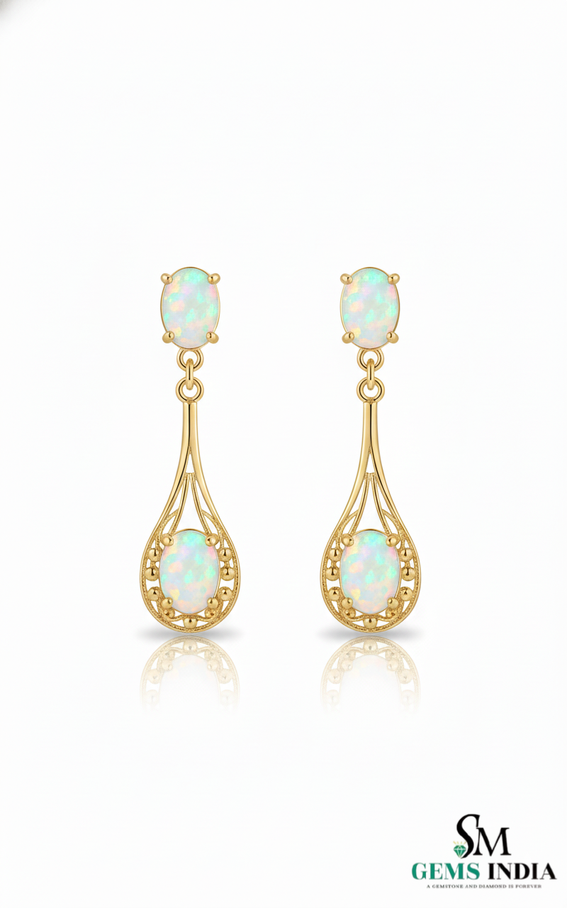 Classic Oval Opal Hanging Earrings – Vintage Inspired Opal earrings for her