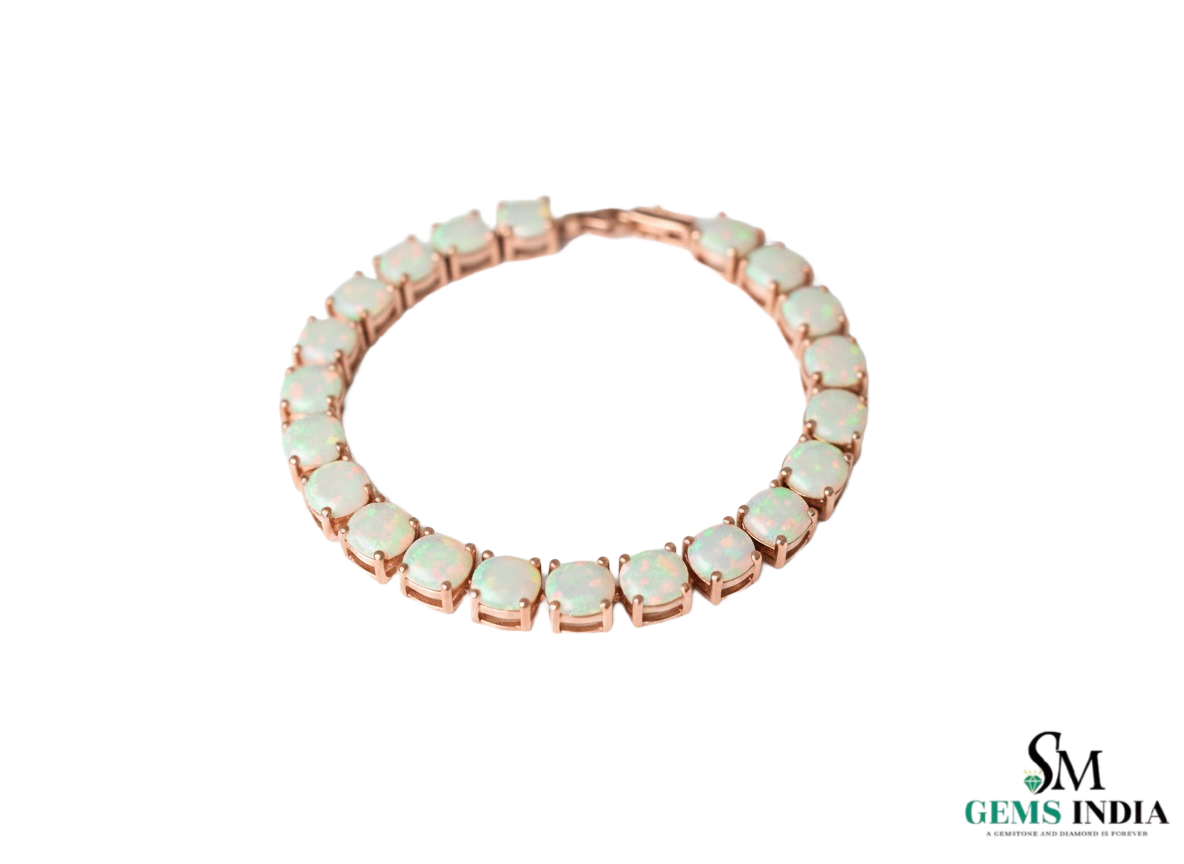 Round Opal Tennis Bracelet in 18k Gold – Classic Elegant Gemstone Jewelry