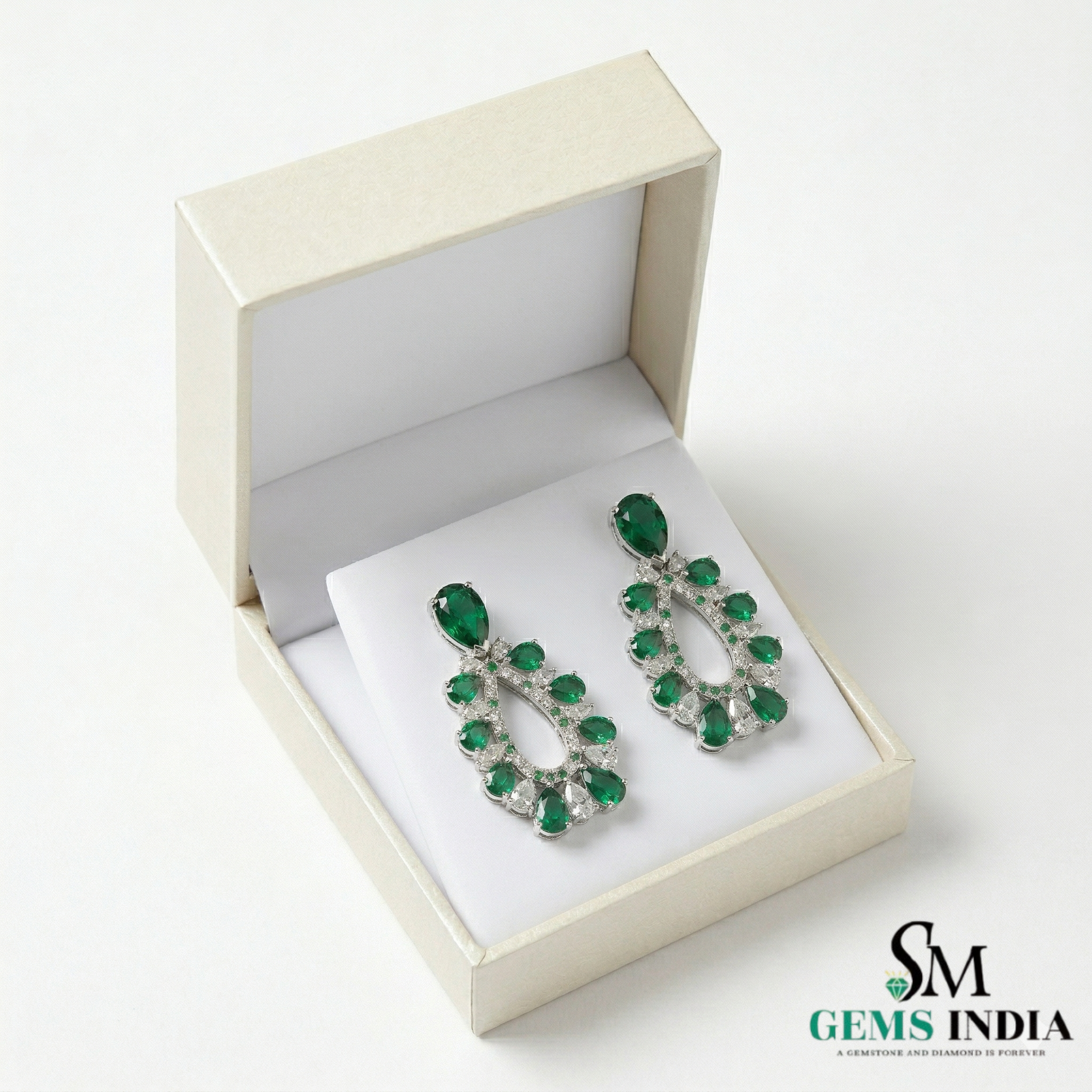 Pear Shape Emerald & Diamond Drop Earrings in 18k Gold – Statement Jewelry