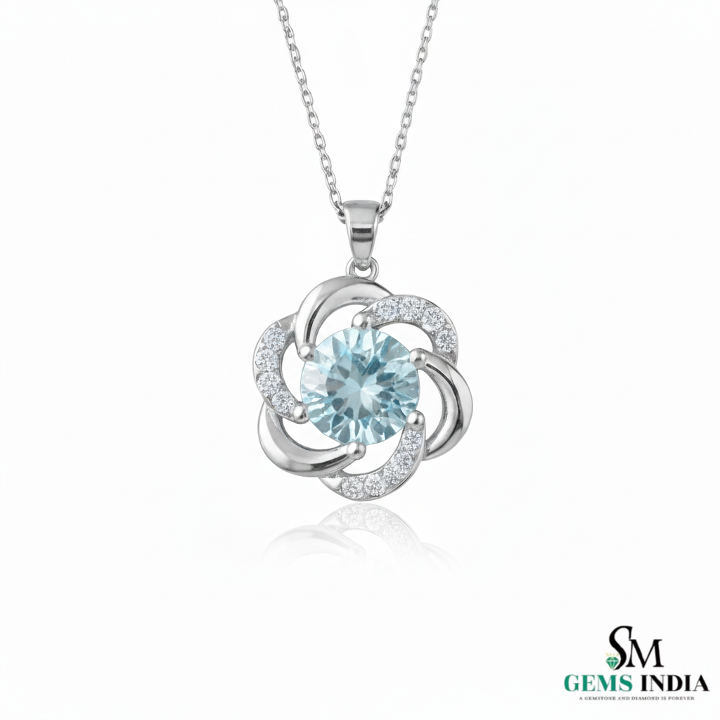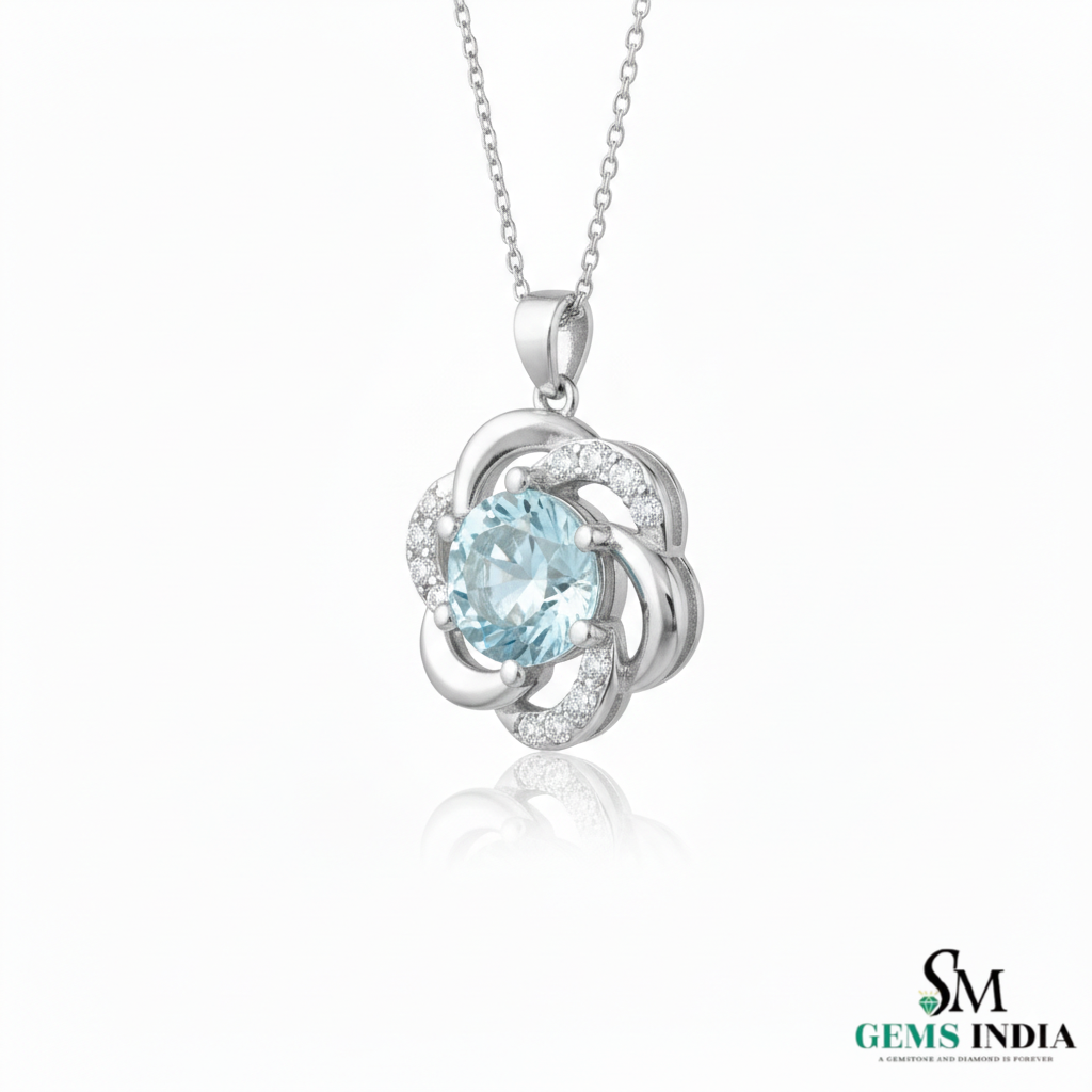 Round Aquamarine & Diamond Pendant - Blue Gemstone Jewelry