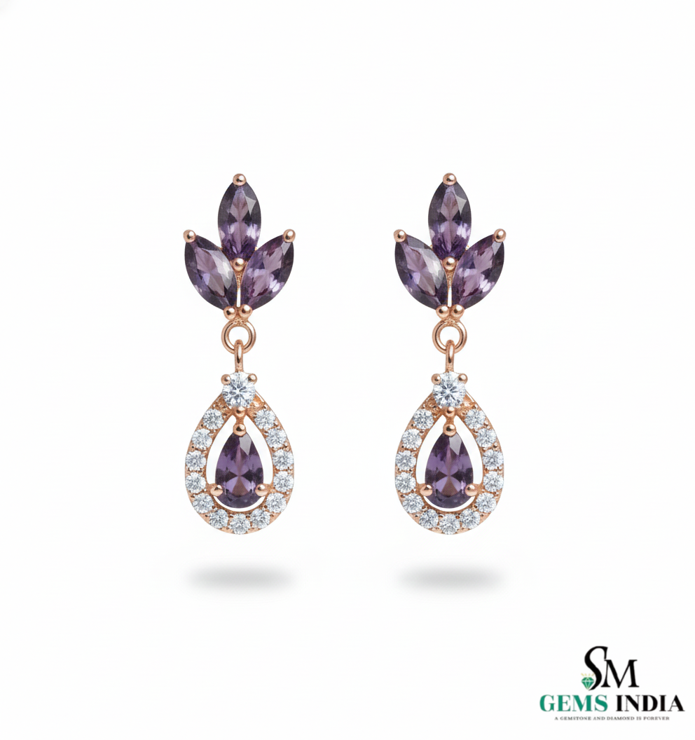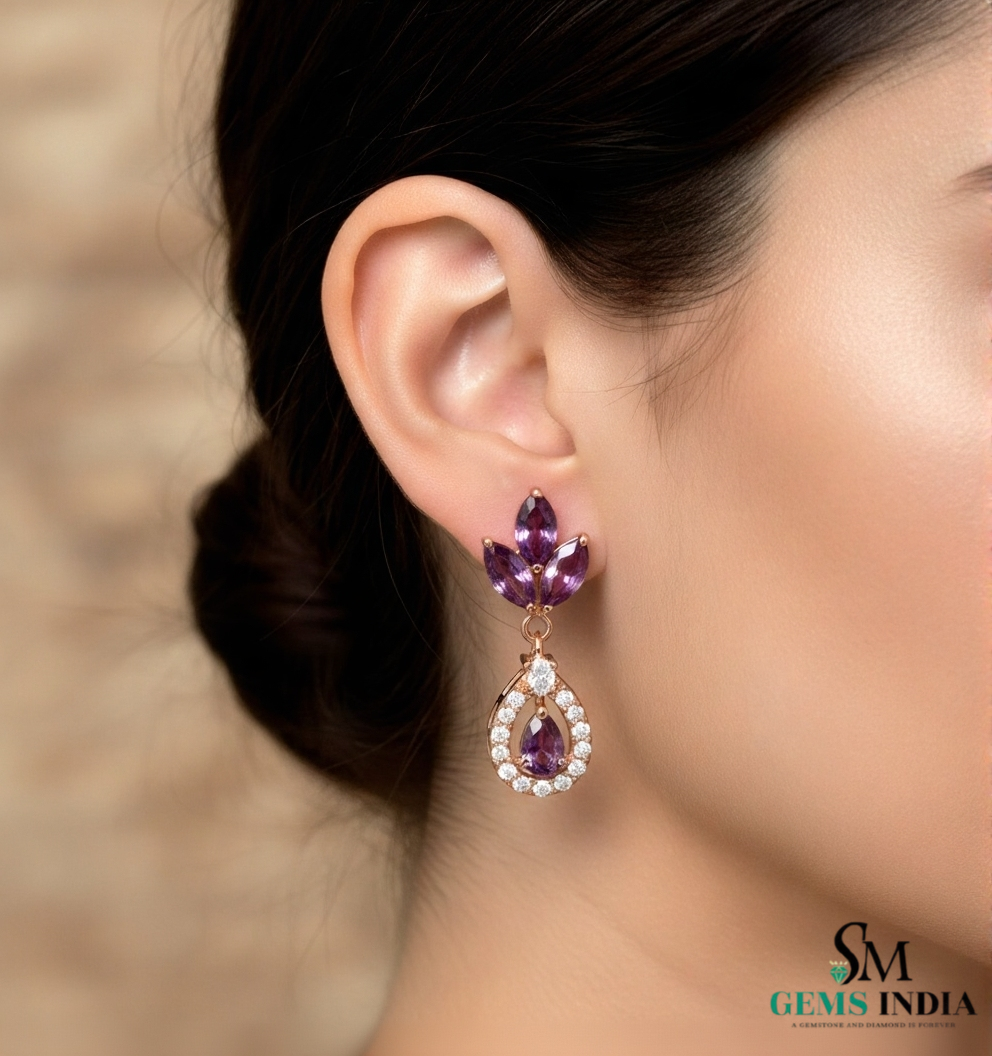 Marquise Cut and Pear Amethyst & Diamond Earrings Anniversary Gift for her