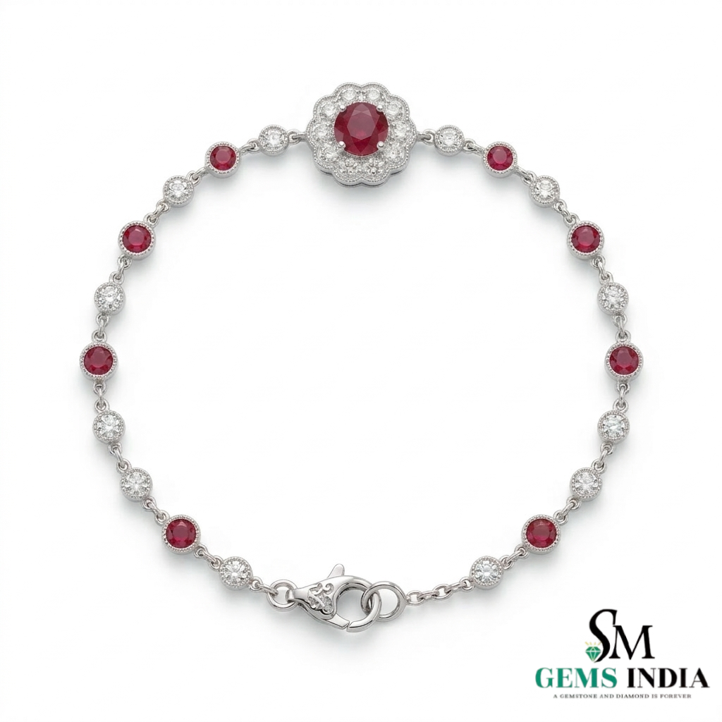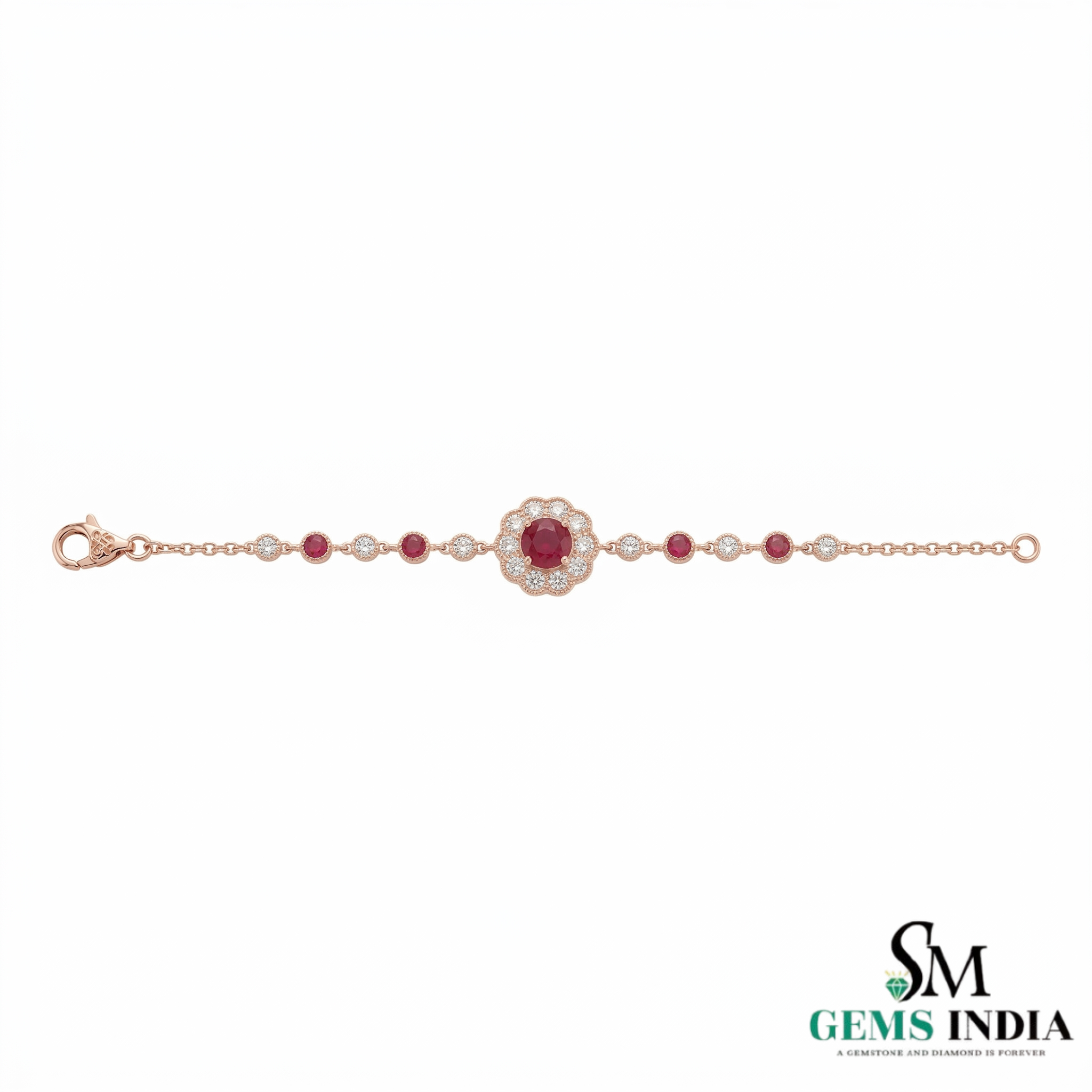 Ruby and Diamond Floral Chain Bracelet in Rose Gold – Fine Gemstone Jewelry for Women