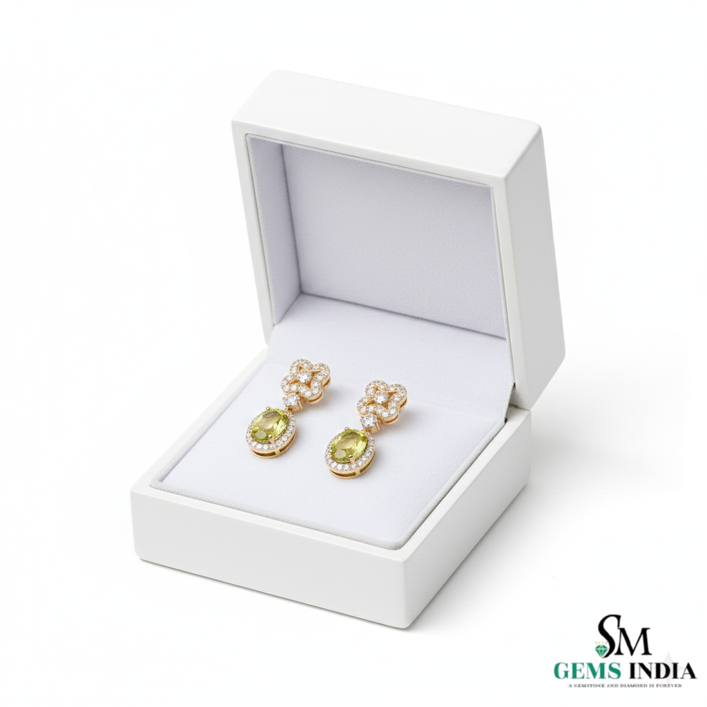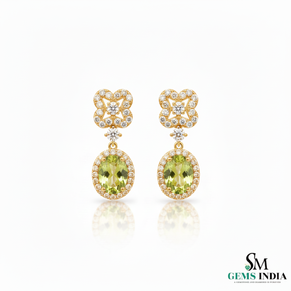 Green Oval Peridot & Diamond Luxury Drop Earrings