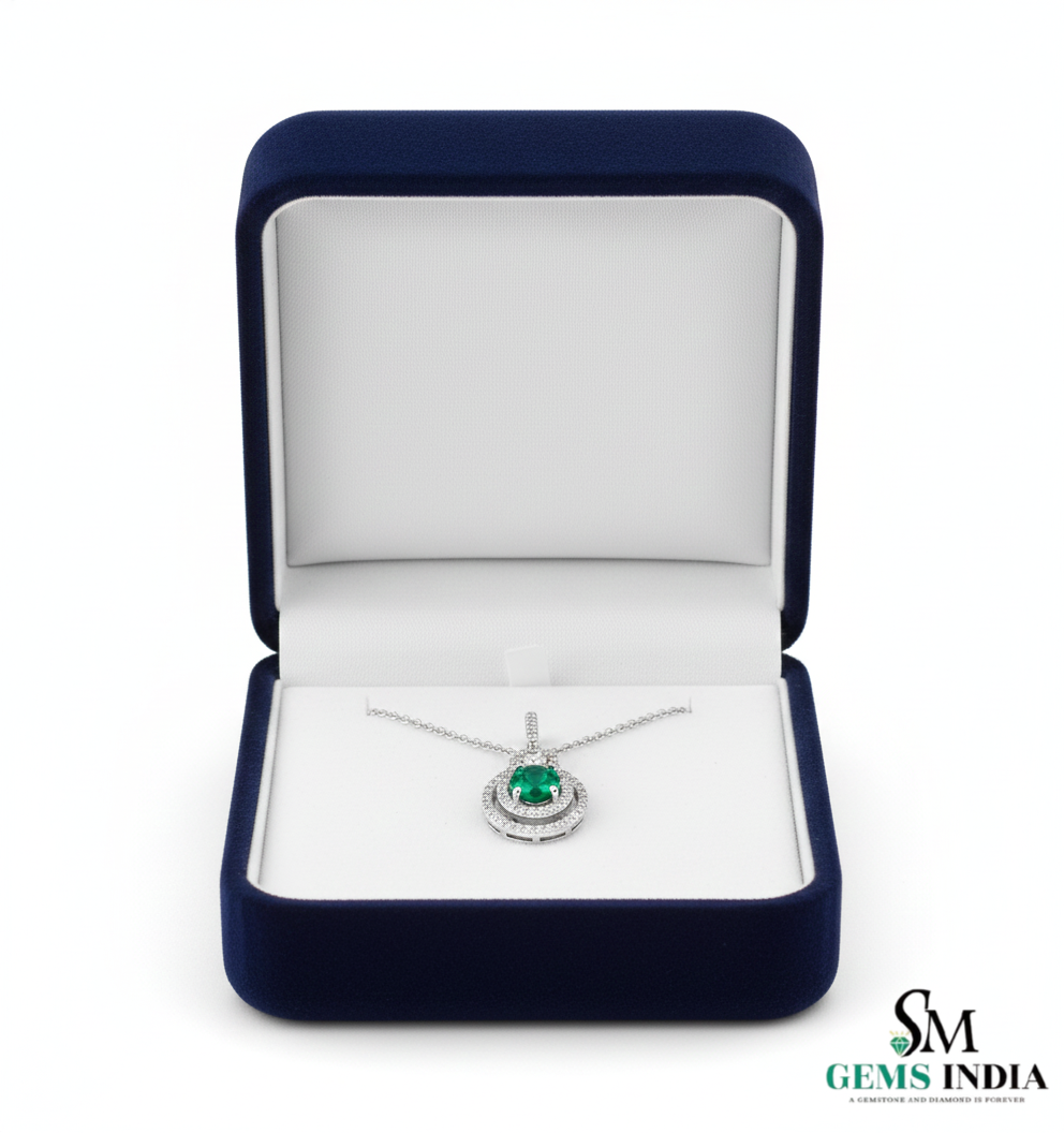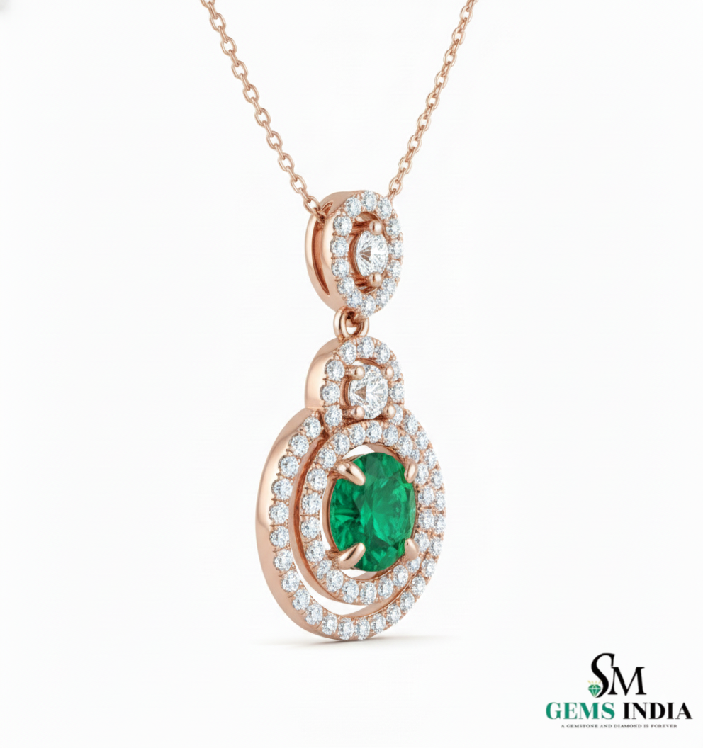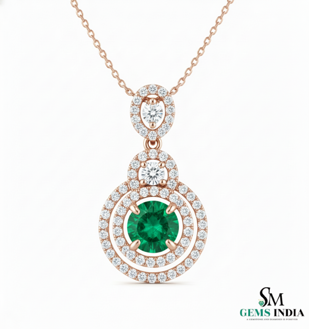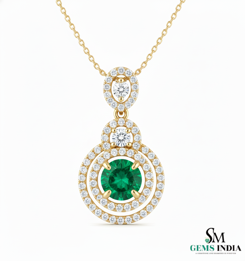 Eternal Round Natural Emerald Circle Pendant Double Halo Gold Pendant