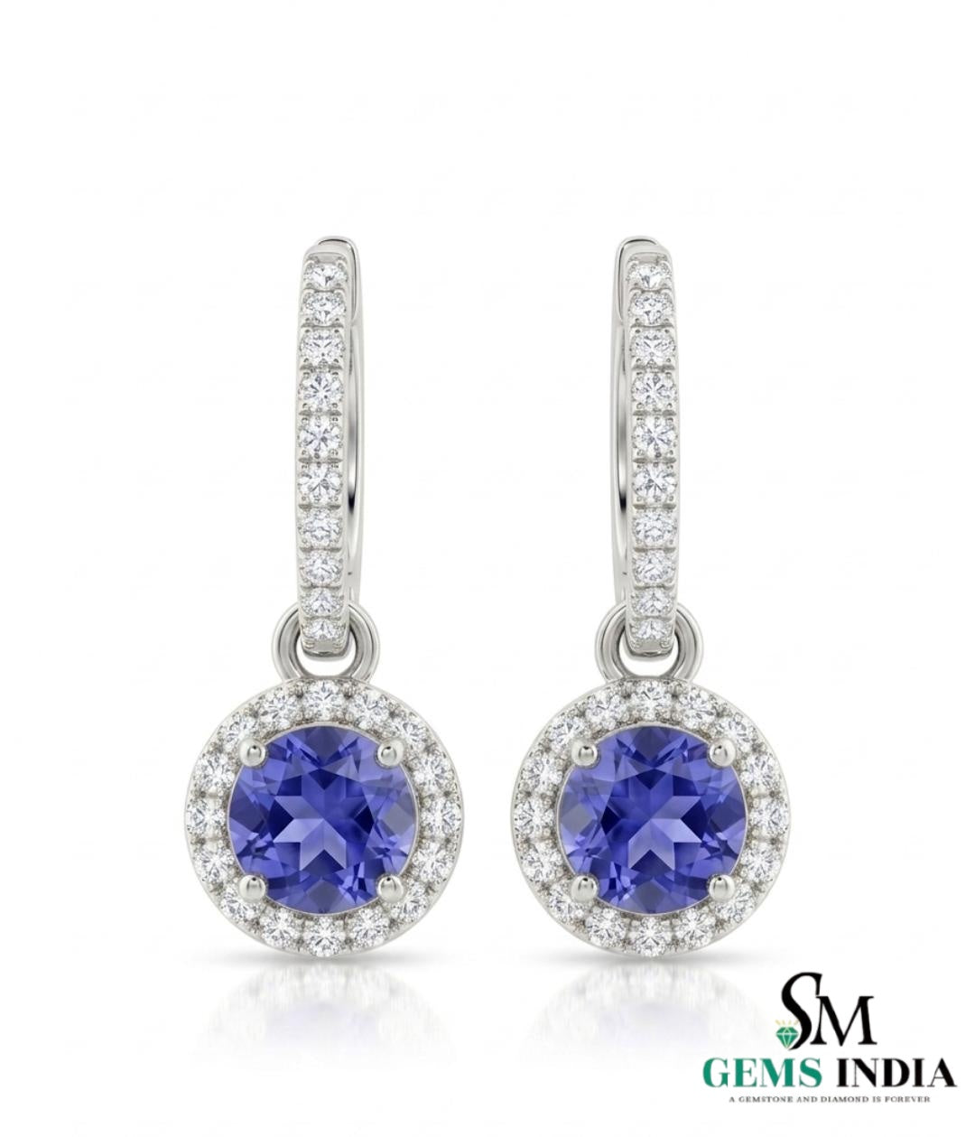 Round Tanzanite Triple Halo Diamond Dangle Earrings - Fine Jewelry