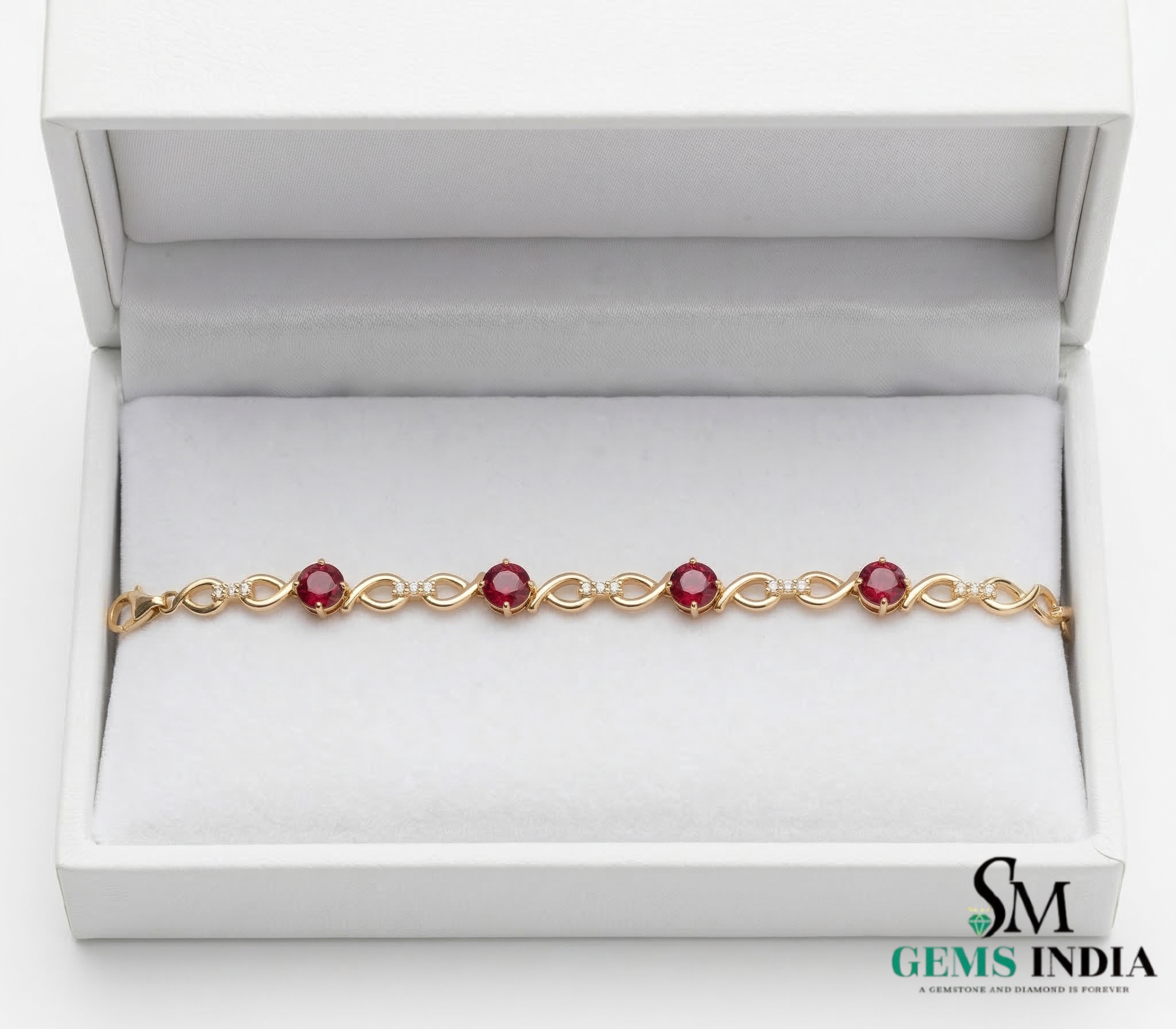 Natural Ruby & Diamond Infinity Link Bracelet - Elegant July Birthstone Tennis Bracelet for Women