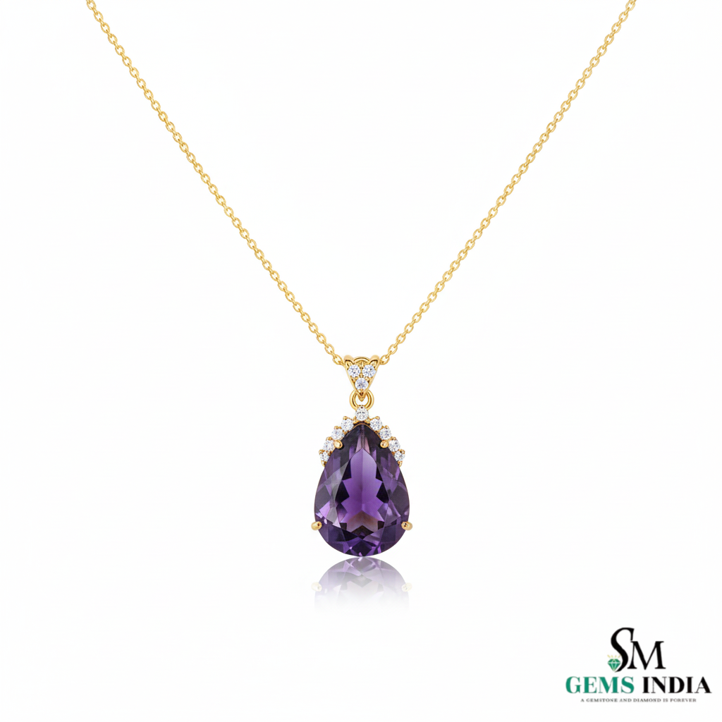 Luxury Pear Cut Amethyst Pendant with Diamond Halo in 18k gold
