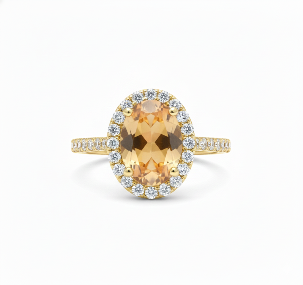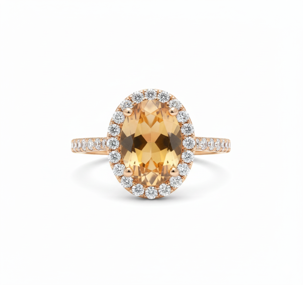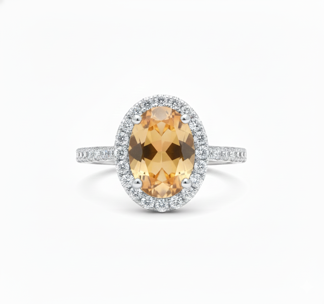 Oval Cut Citrine Ring with Diamond Halo - Citrine promise ring