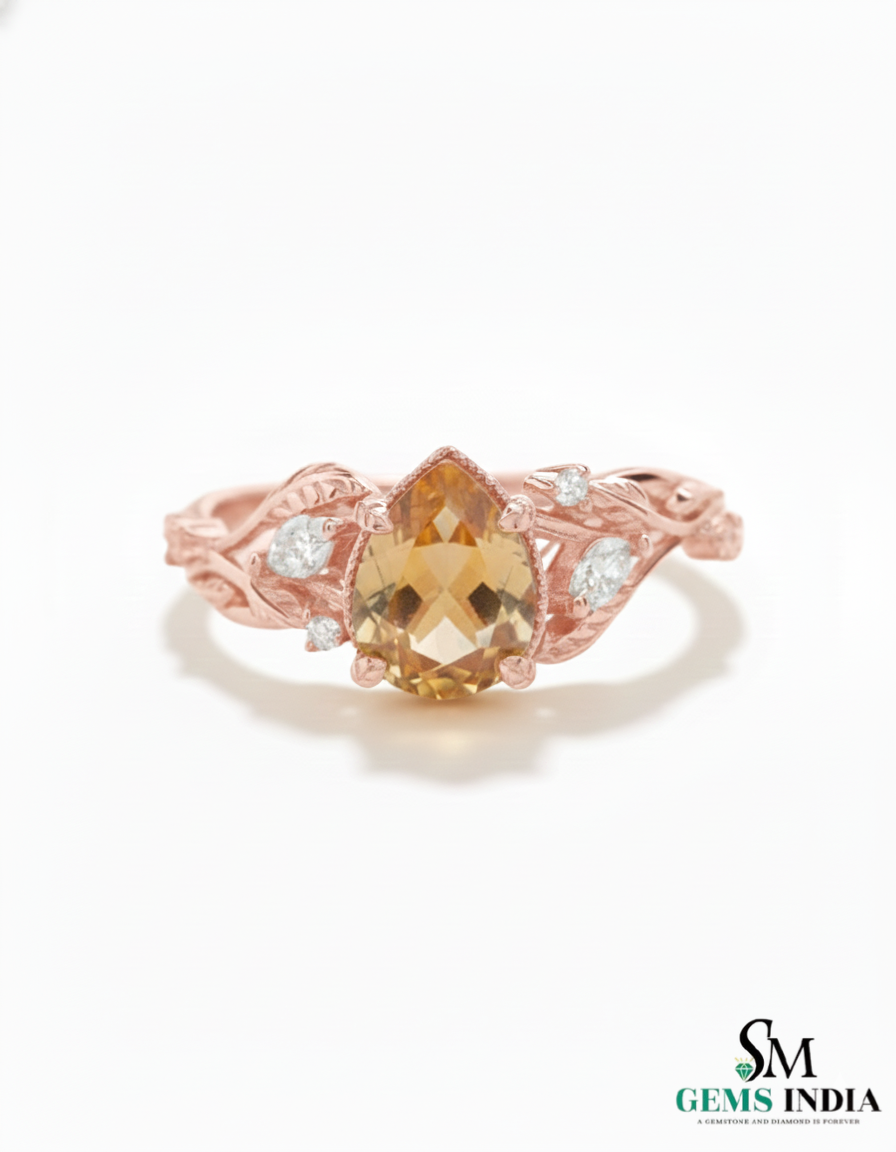 Pear Cut Citrine & Diamond Twist Ring in 14k and 18k Gold Elegant Gemstone Ring