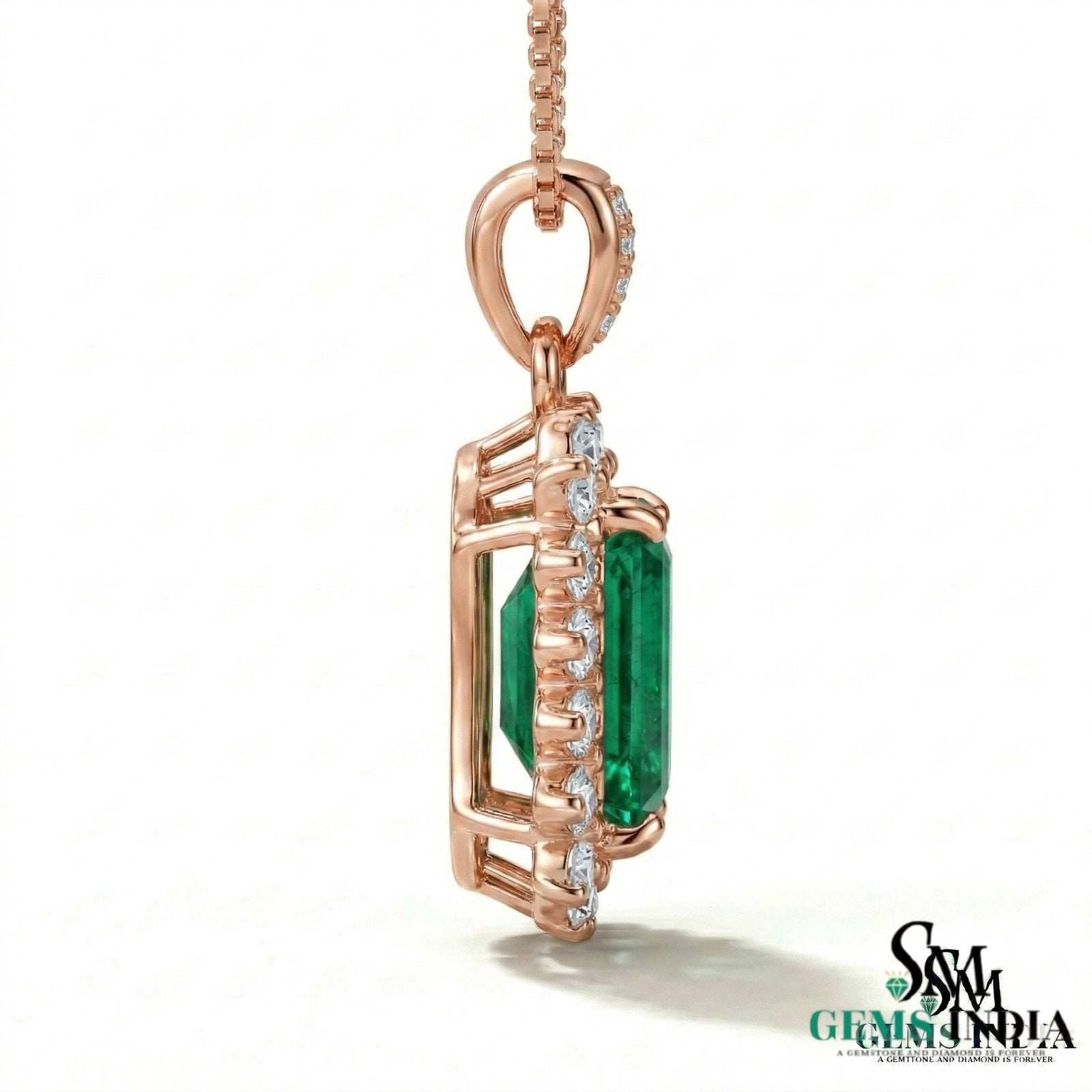 Emerald Cut Green Emerald & Diamond Halo Pendant - Fine Jewelry Emerald Pendant