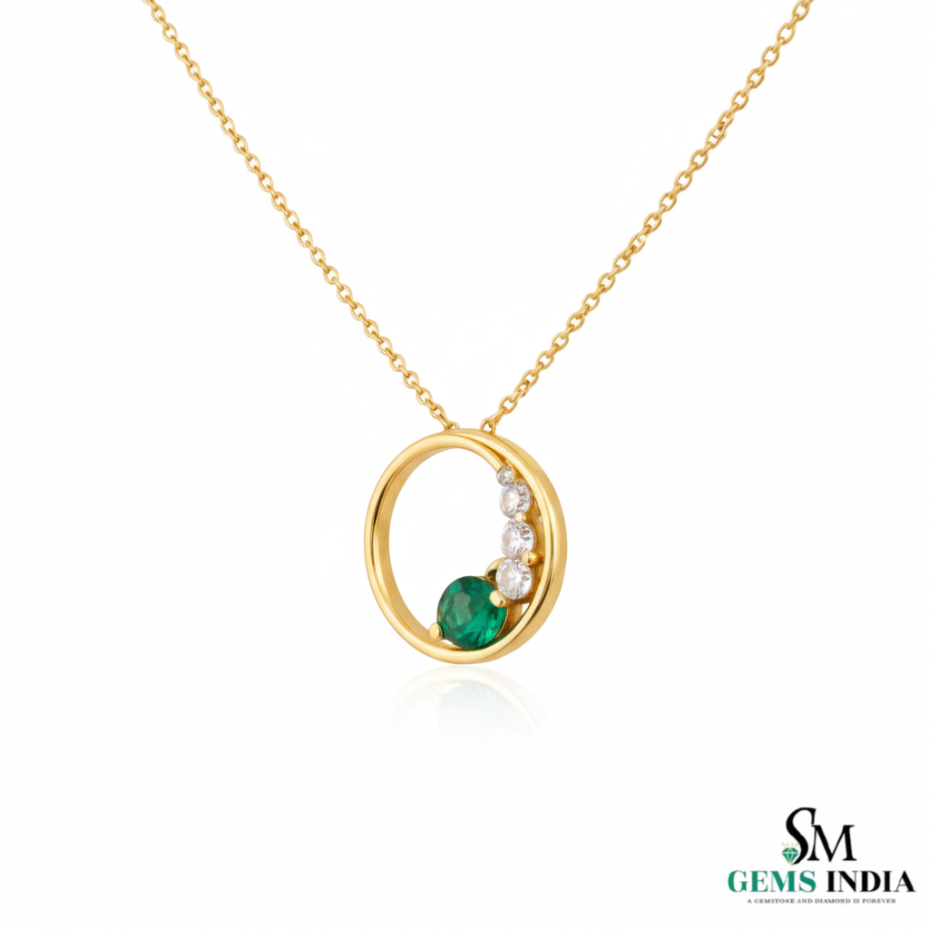 Round Green Natural Emerald Diamond Open Circle Pendant - Minimalist Fine Jewelry