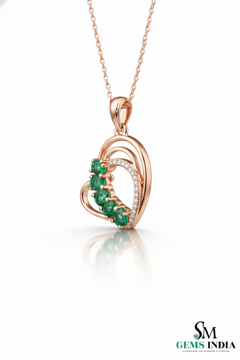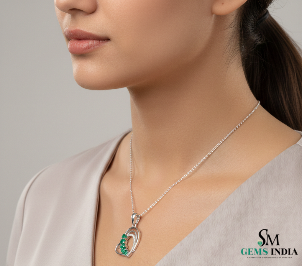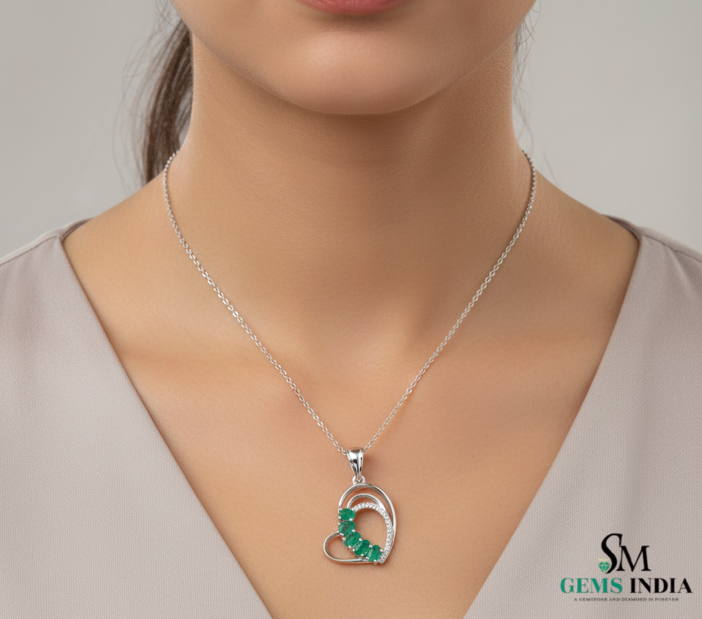 Oval shape Natural Emerald Diamond Heart Pendant - Fine Gemstone Jewelry