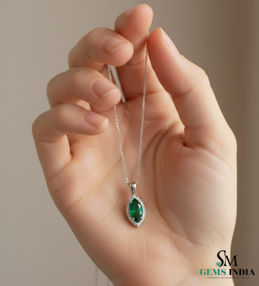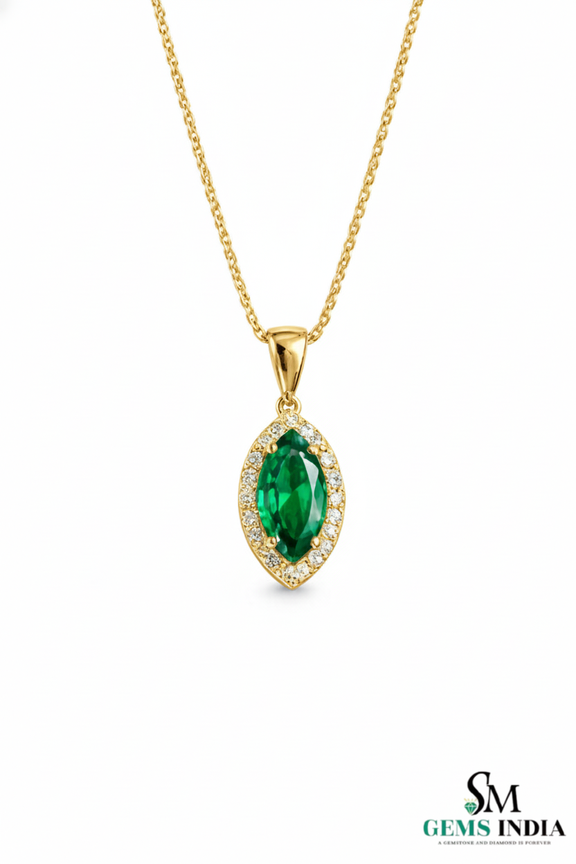 Natural Marquise Emerald Diamond Halo Pendant – Fine Jewelry