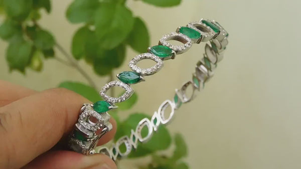 14k Gold Zambian Emerald and Diamond Bangle Bracelet